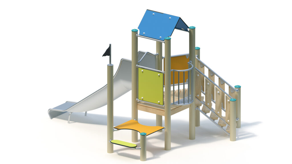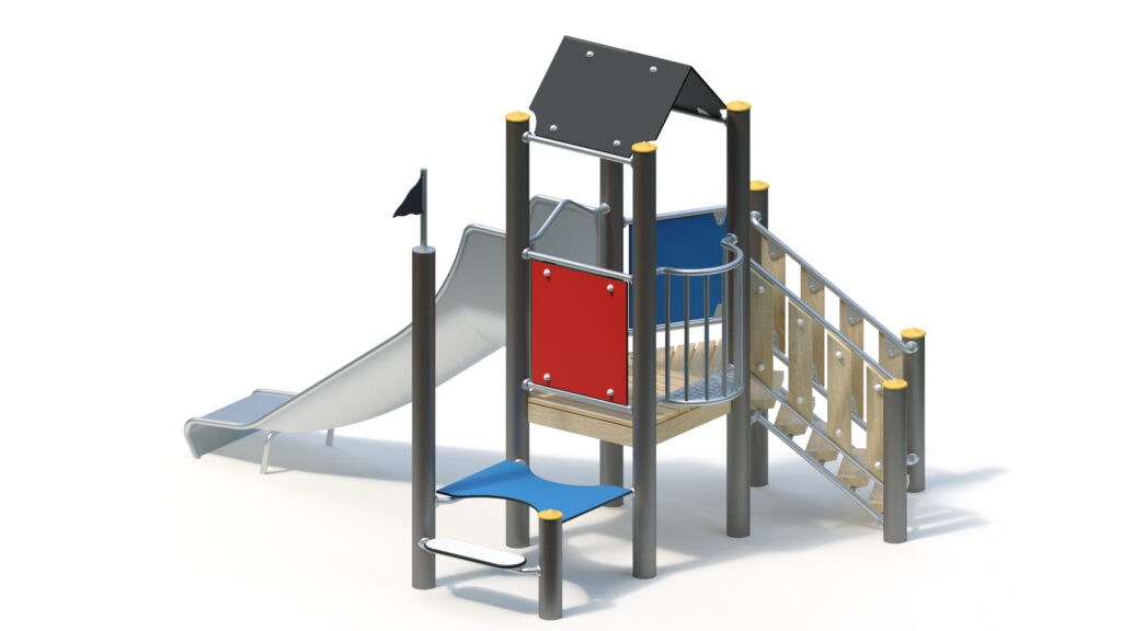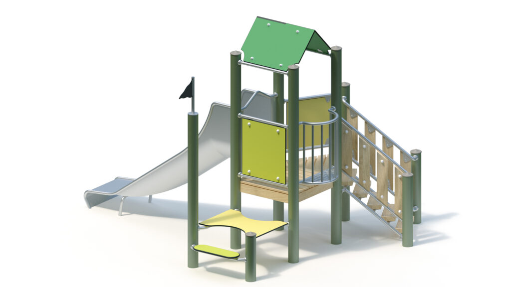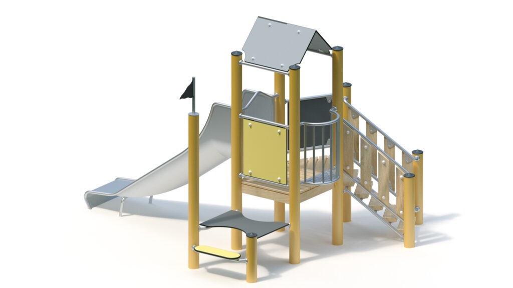 Metallbauteile: Edelstahl. Das Robinienholz wird mit einem wasserabweisenden, atmungsaktiven Schutzanstrich versehen. Neben dem Schutz vor Feuchtigkeit reduziert diese Behandlung die Rissbildung. Die modularen Anbauteile leiten ihre Kräfte über eine spezielle Adapterbefestigung direkt in die Standpfosten ein. Die Schraubverbindungen sind gegen unbefugtes Lösen gesichert.