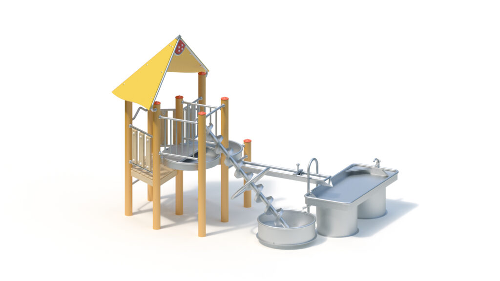 Das Robinienholz wird mit einem wasserabweisenden, atmungsaktiven Schutzanstrich versehen. Neben dem Schutz vor Feuchtigkeit reduziert diese Behandlung die Rissbildung. Die modularen Anbauteile leiten ihre Kräfte über eine spezielle Adapterbefestigung direkt in die Standpfosten ein. Die Schraubverbindungen sind gegen unbefugtes Lösen gesichert.