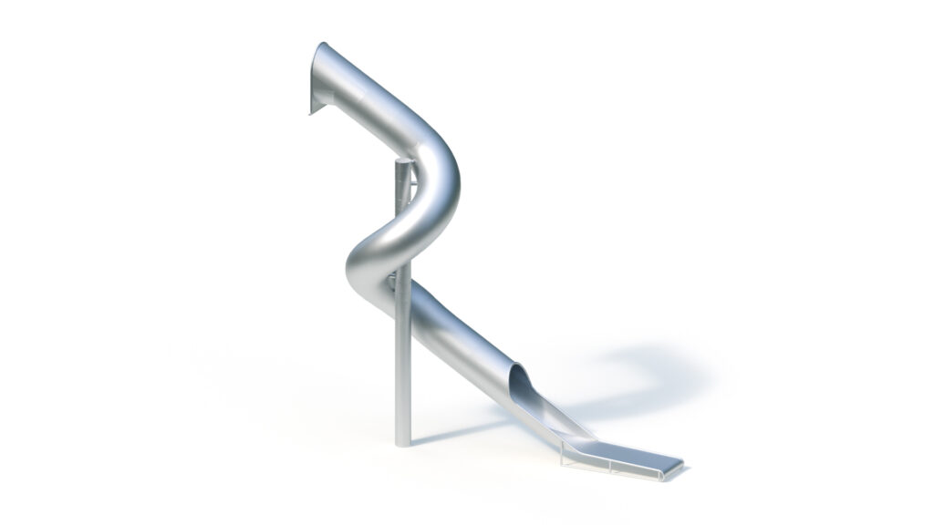 sliding sections from stainless steel, of low noise level thanks to tunnel shape, welded to a two-part slide for transport reasons, including appropriate connecting flanges to facilitate installation on site