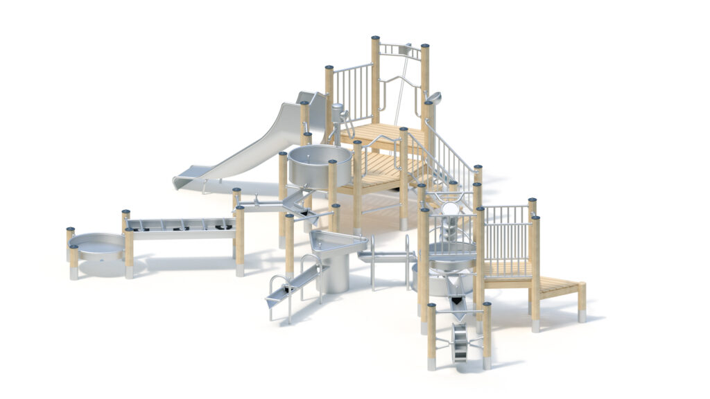 – sand chute from coloured HPL in a tubular stainless steel frame
