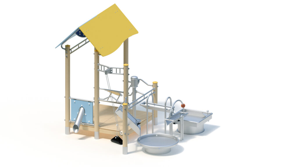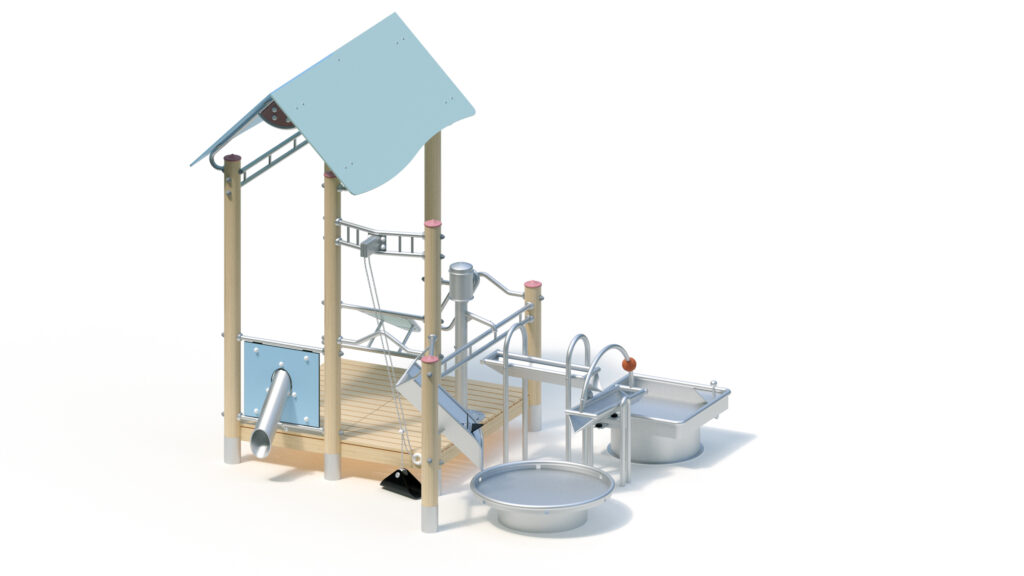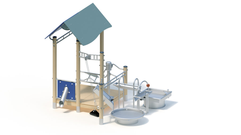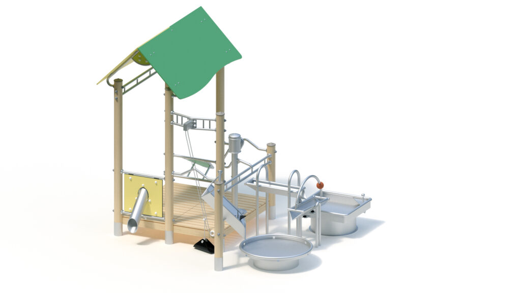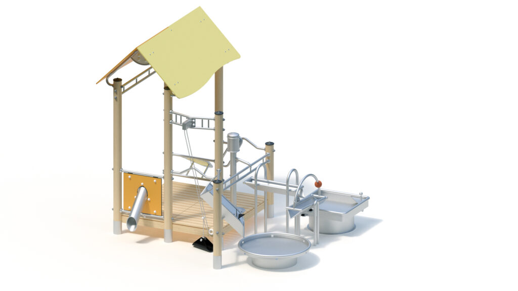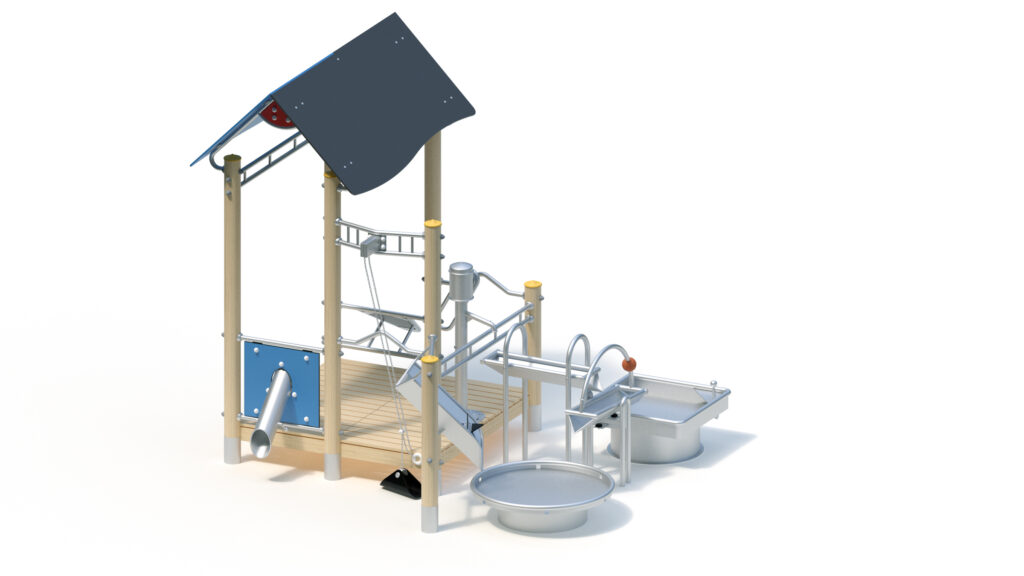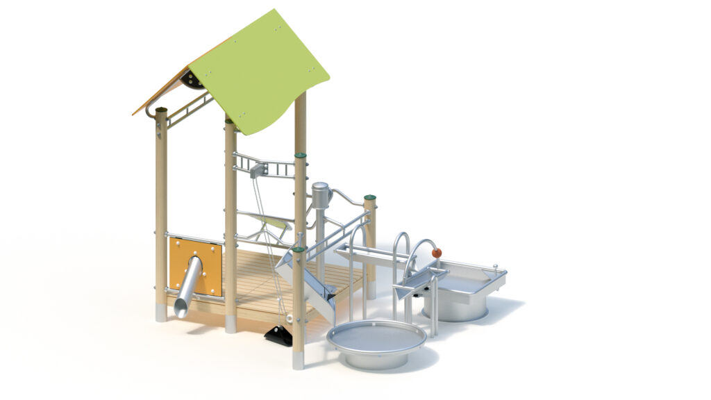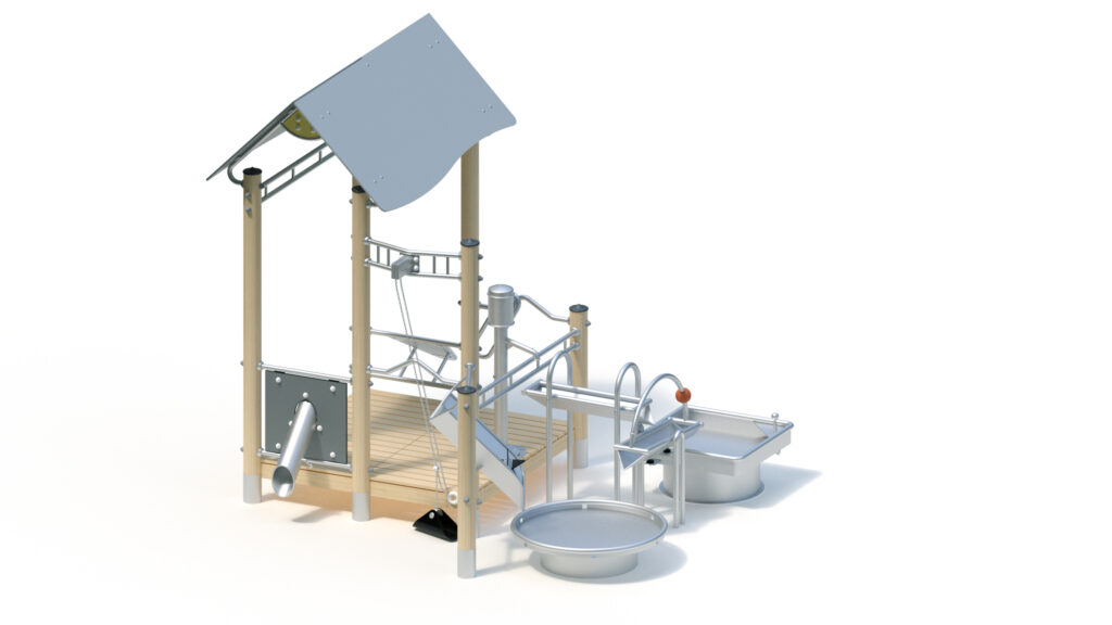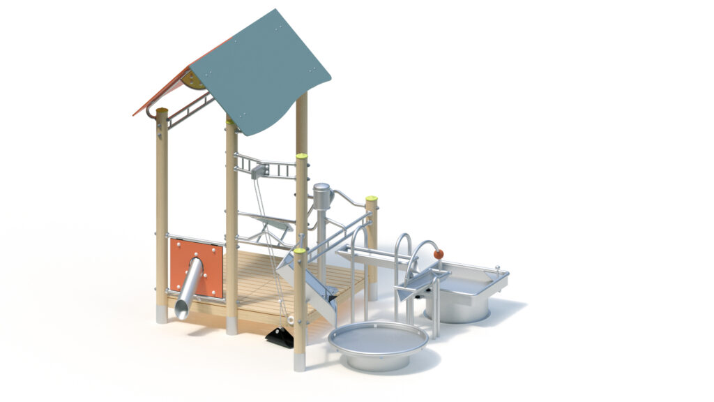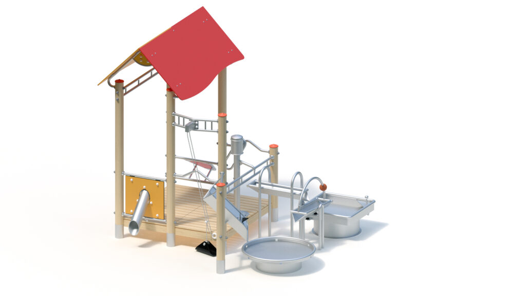 – infill panel from highly weather-resistant coloured HPL with sand chute and shutter, fastening between stainless steel tubes Ø 33,7 x 2 mm