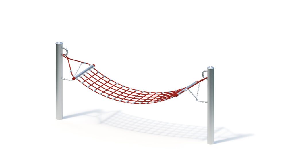 – swing basket with all around shock absorption by means of PE cord sheathing; basket ring Ø 1,00 m from hot-dip galvanised steel, Usacord rope net, 4-strand, PES with steel core