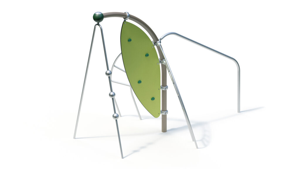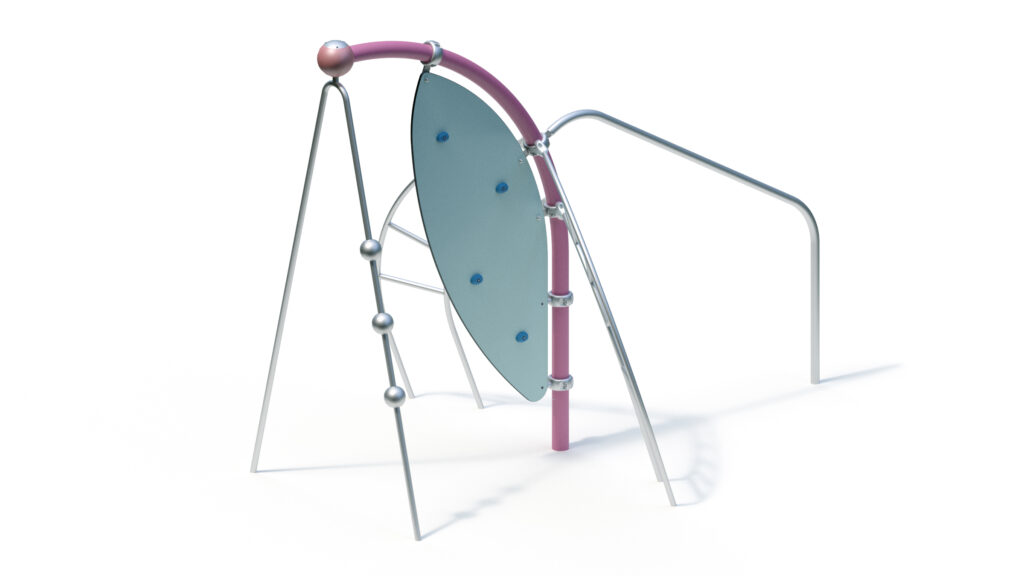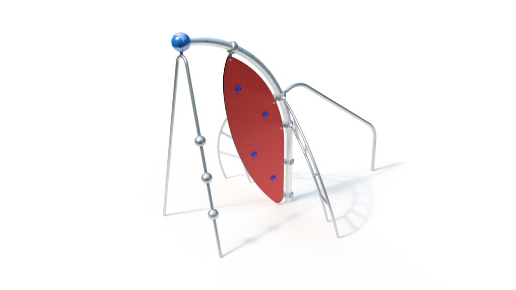 – Kletterwand aus höchst witterungsbeständiger HPL-Schichtstoffplatte Farbe rot ähnlich RAL 2002, 20 mm, mit beidseitig aufgesetzten Freeclimbing-Elementen