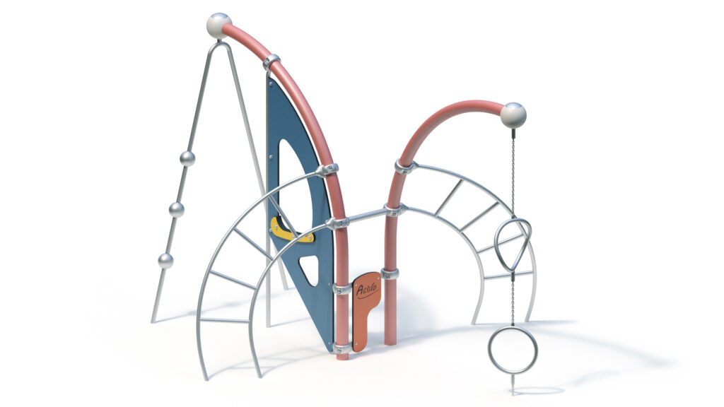 – verschweißte Konstruktion aus Edelstahlrohr Ø 38 mm mit drei Edelstahlkugeln Ø150 mm