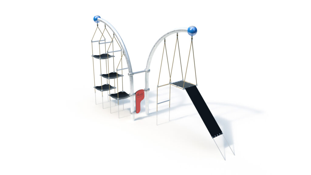 – verschweißte Konstruktion aus Edelstahlrohr Ø 60,3 mm mit Herkules-Seilkreuz aus Ø16 mm Herkulesseil mit 6-litziger Stahleinlage