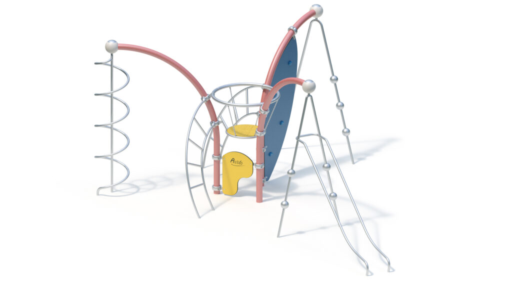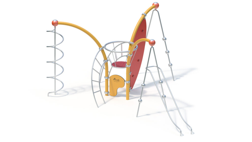 – climbing wall made from a coloured highly weather-resistant HPL panel (20 mm thickness) in red similar to RAL 2002, with free climbing elements fitted to both sides