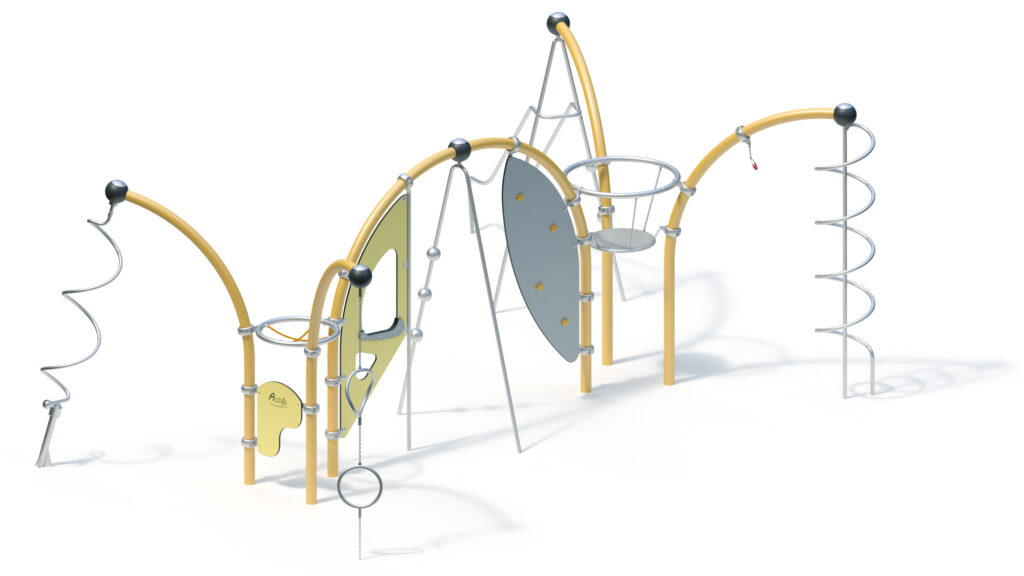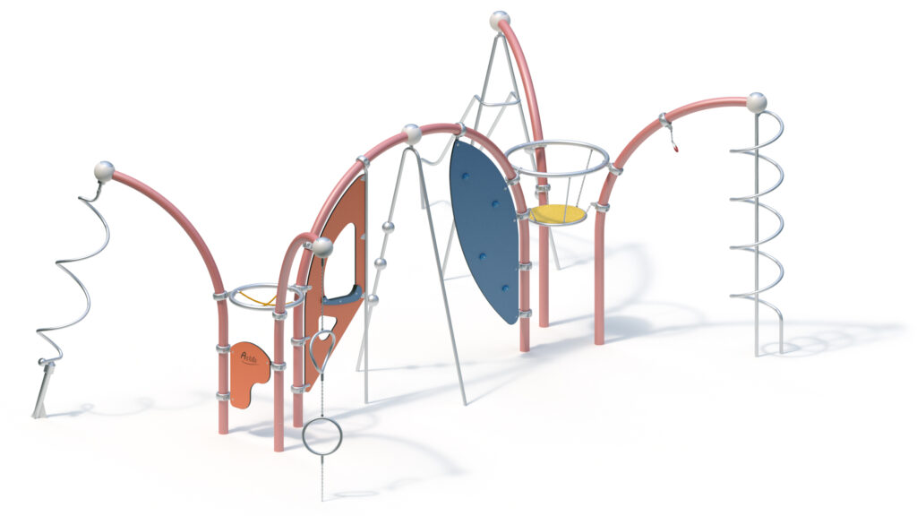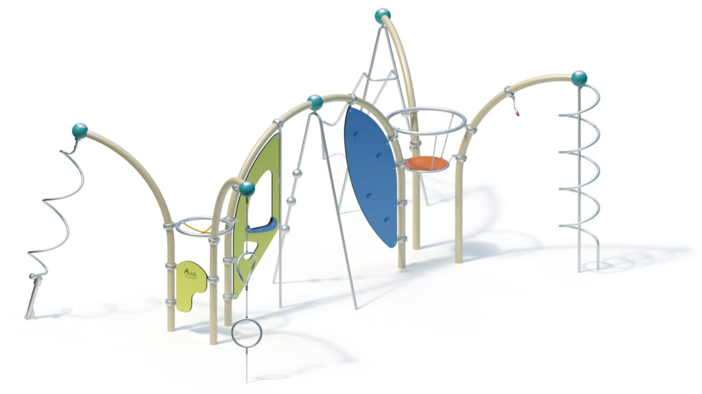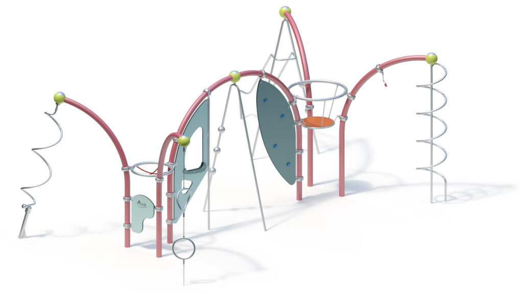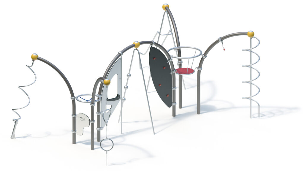 – welded construction from stainless steel tubes Ø 60,3 mm with a Hercules cross joint from Ø16 mm rope with 6-stranded steel core