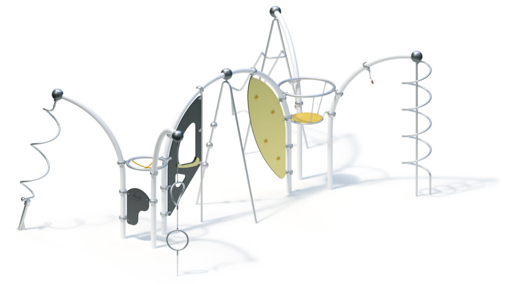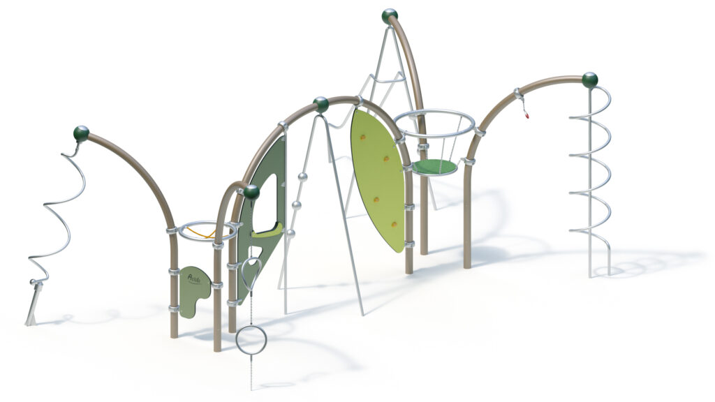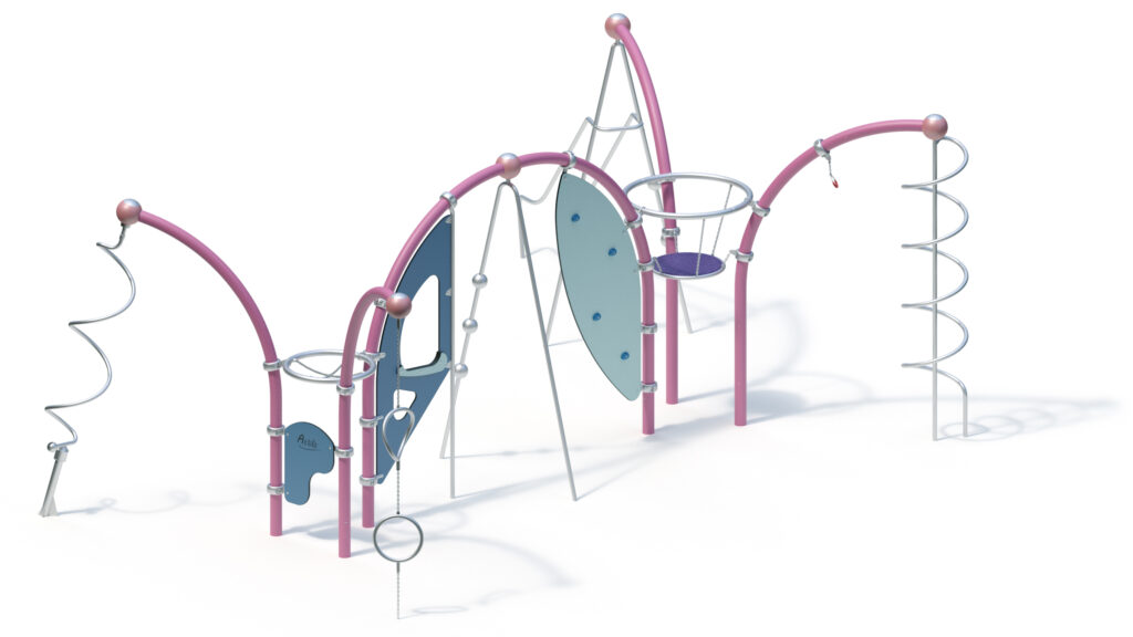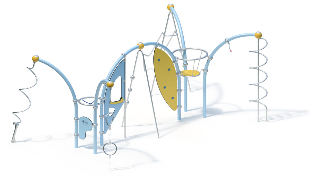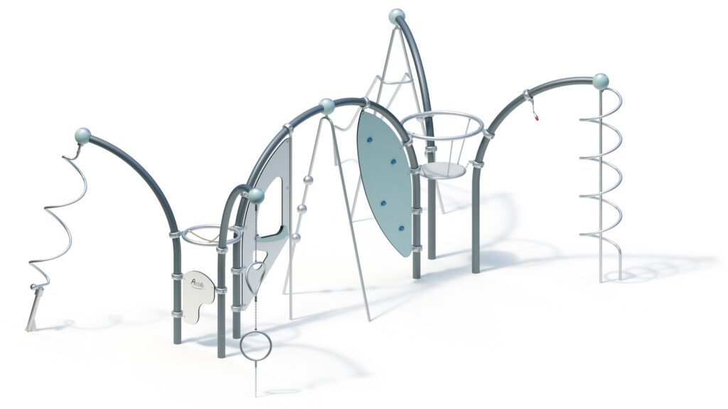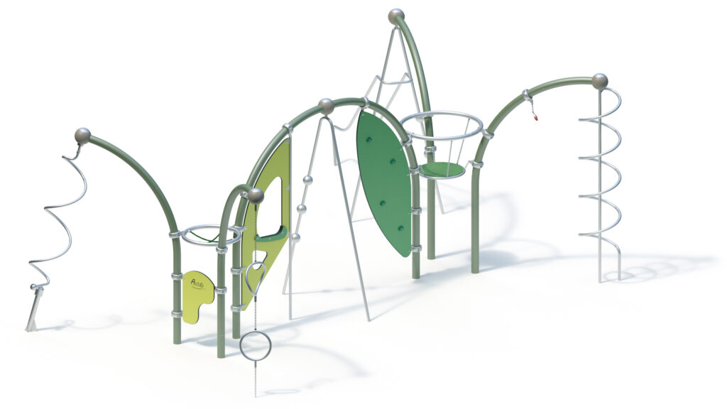 – welded construction from stainless steel tubes Ø 60,3 mm with a Hercules cross joint from Ø16 mm rope with 6-stranded steel core