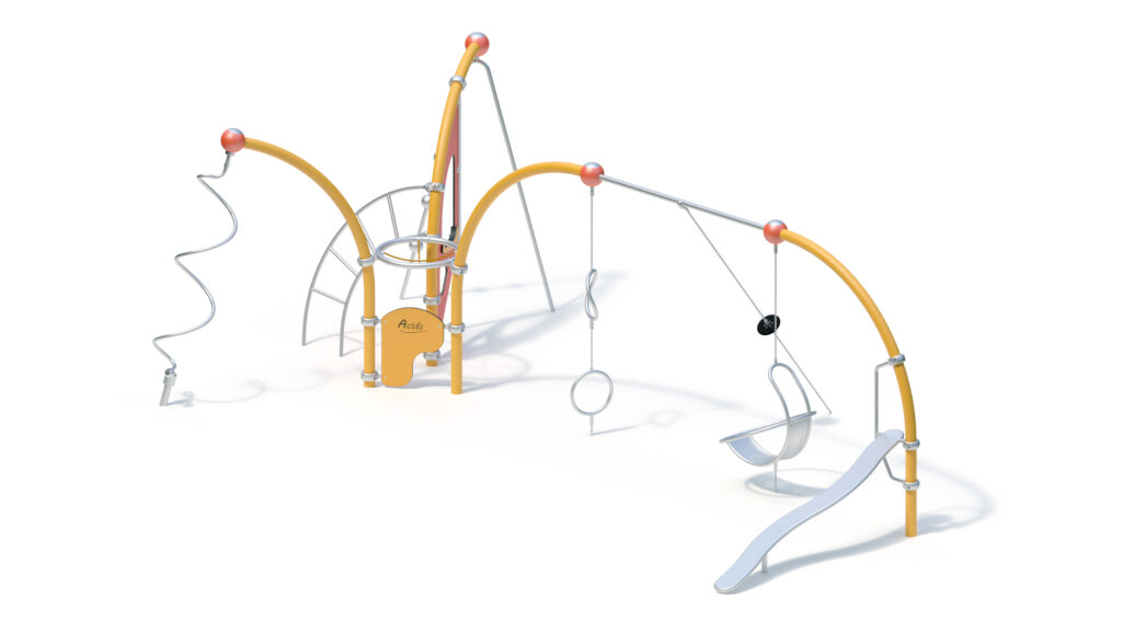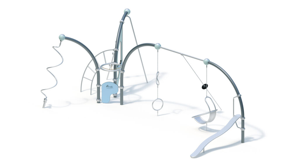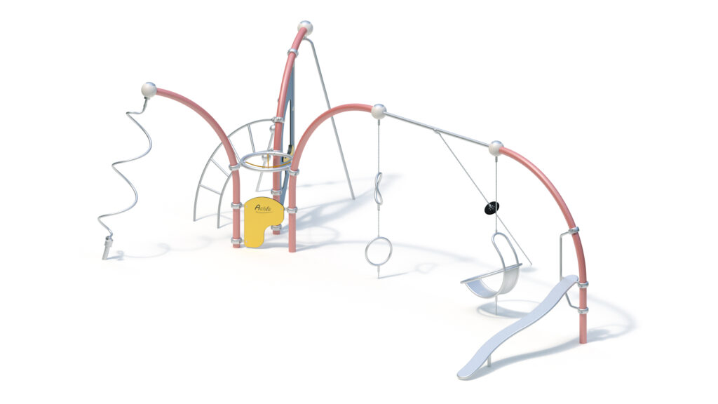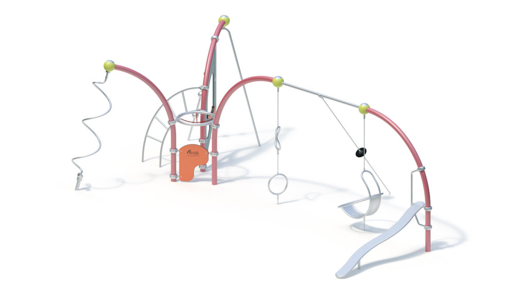 – welded construction from stainless steel tubes Ø 60,3 mm with a Hercules cross joint from Ø16 mm rope with 6-stranded steel core