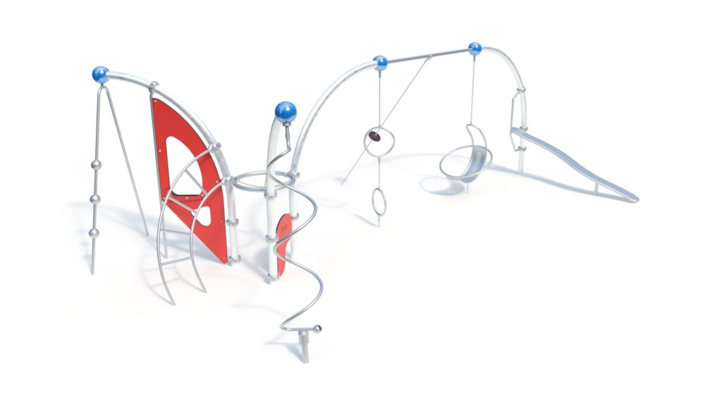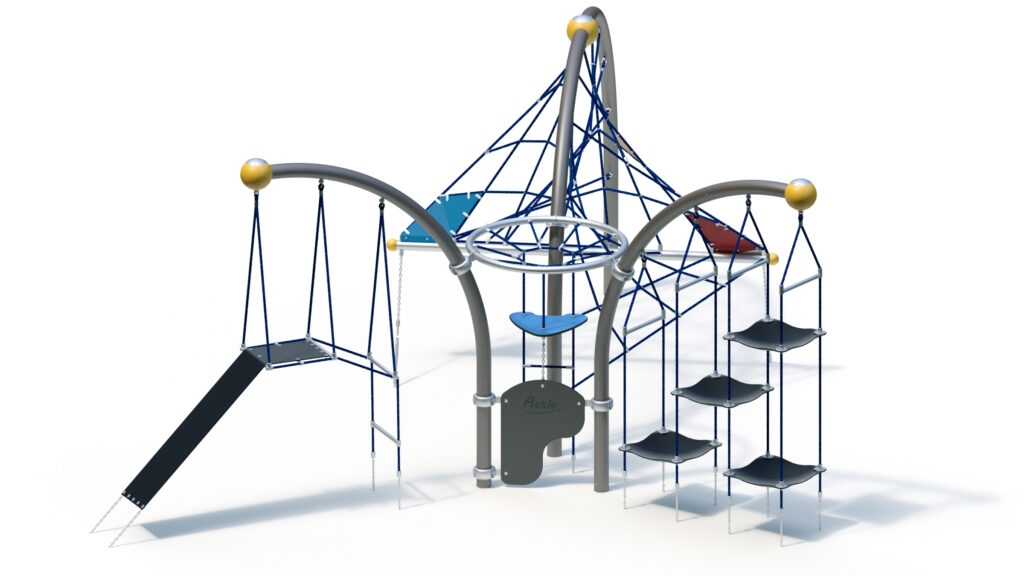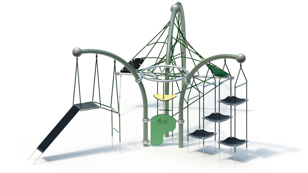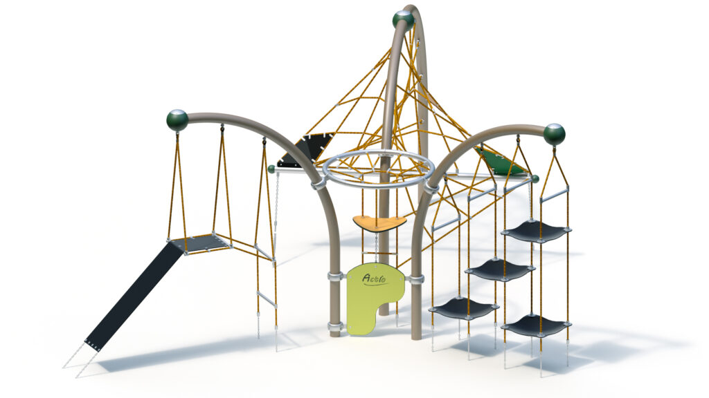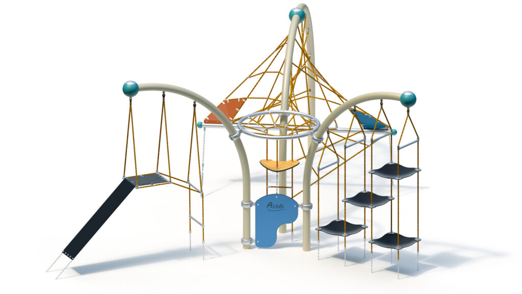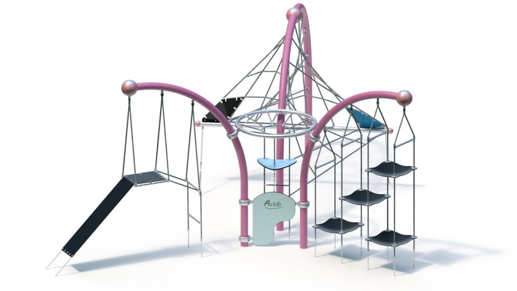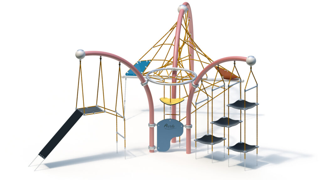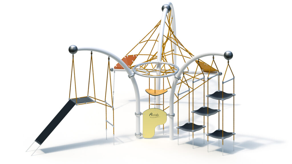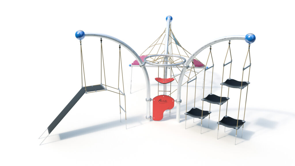 – Bodenbefestigung durch Edelstahlketten (Ø 7 mm) und Fundamentrohr (Ø 38 x 2 mm)