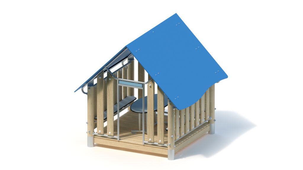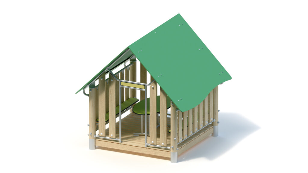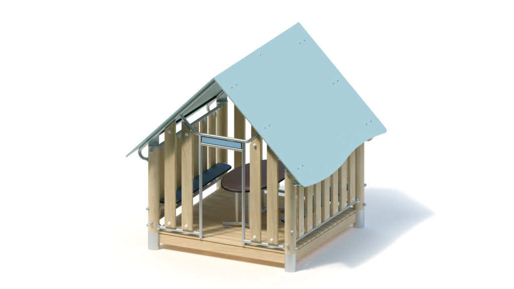 Metallbauteile: Edelstahl. Das Robinienholz wird mit einem wasserabweisenden, atmungsaktiven Schutzanstrich versehen. Neben dem Schutz vor Feuchtigkeit reduziert diese Behandlung die Rissbildung. Die modularen Anbauteile leiten ihre Kräfte über eine spezielle Adapterbefestigung direkt in die Standpfosten ein. Die Schraubverbindungen sind durch Abdeckkappen gegen unbefugtes Lösen gesichert.