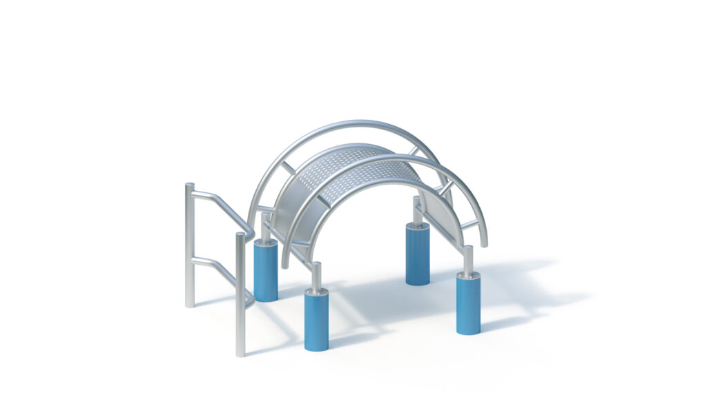 The device is optionally available as permanently installed public playground equipment (certified according to EN 1176) or as permanently installed outdoor fitness equipment (certified according to EN 16630).