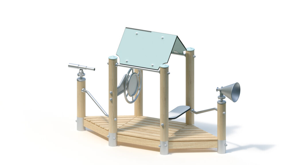 – saddle roof, 45° inclination, made from highly weather-resistant coloured HPL panels, 13 mm thickness, fastening to stainless steel frame Ø 33,7 x 2 mm