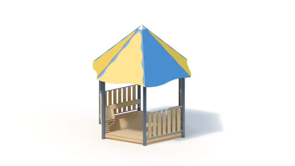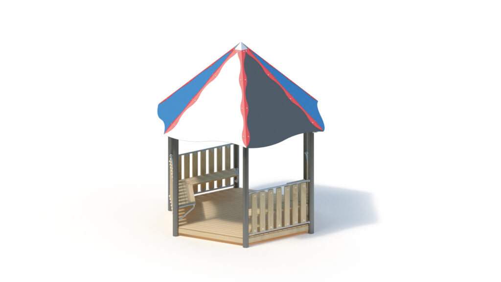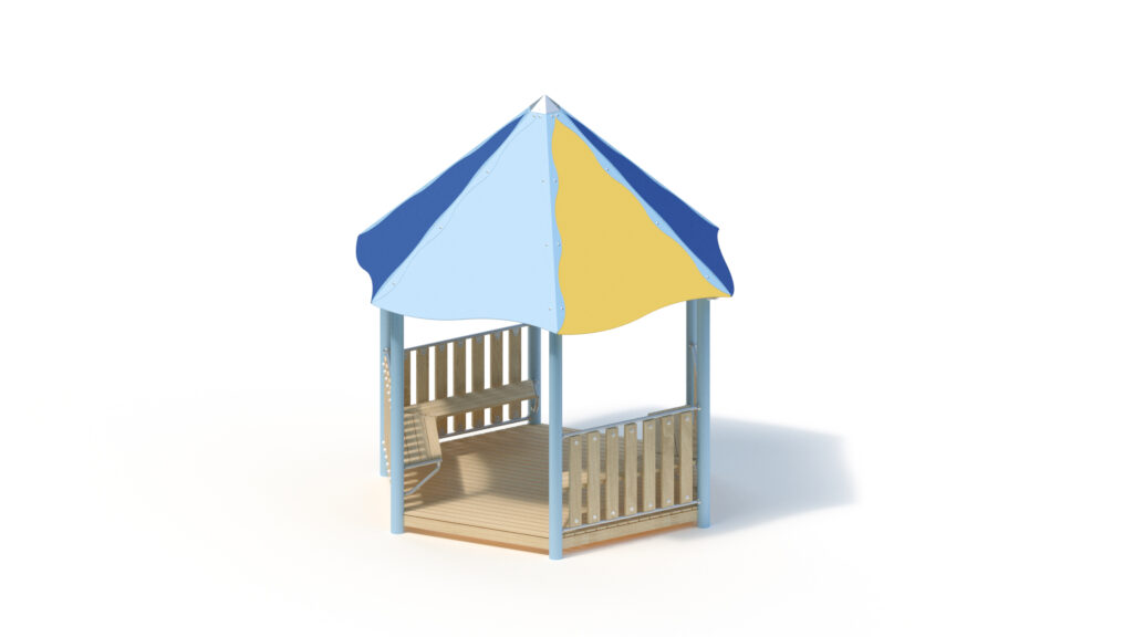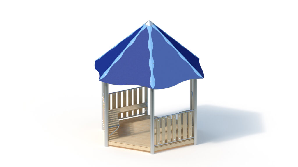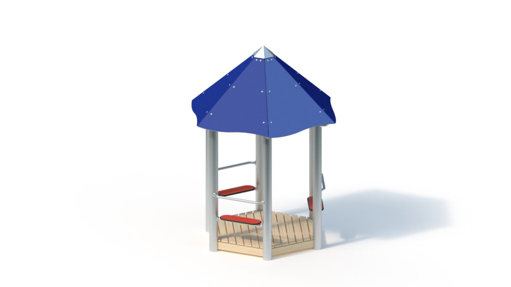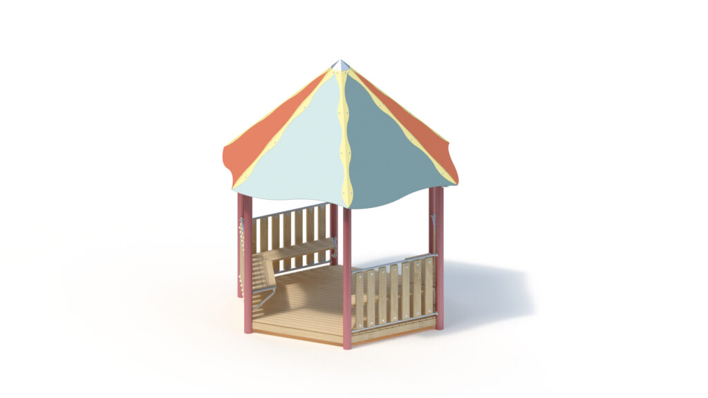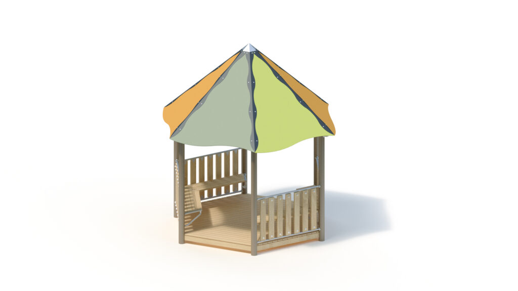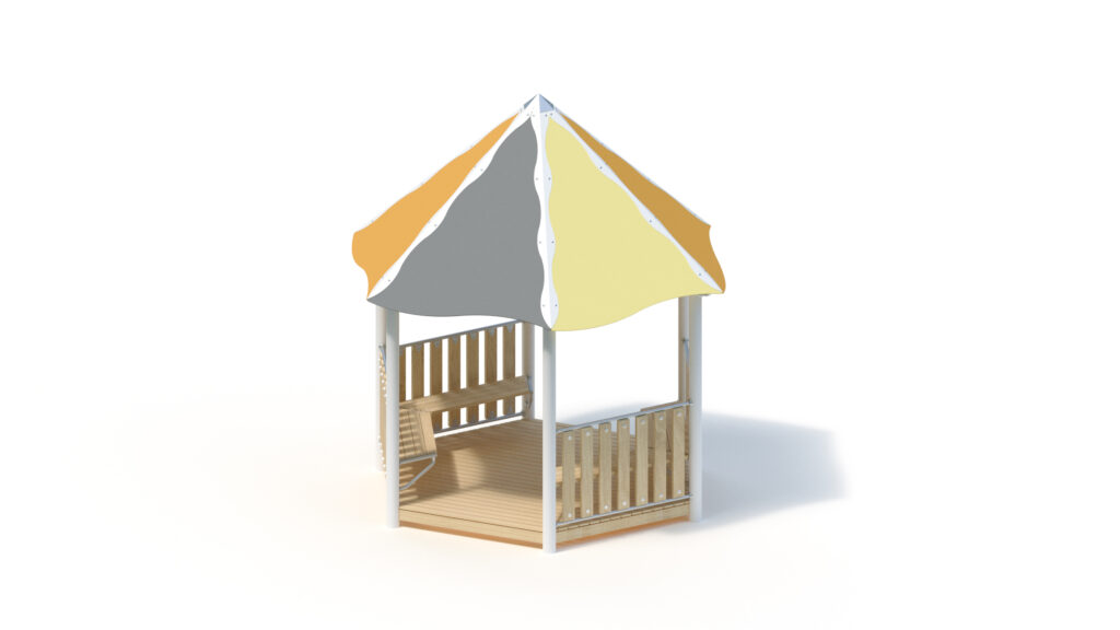 – tent roof, 45° inclination, from highly weather-resistant HPL panels, 13 mm thickness. Fastening to stainless steel frame Ø 33,7 x 2 mm including stainless steel edge protection with coloured powder-coating