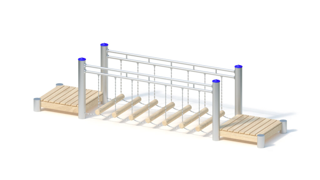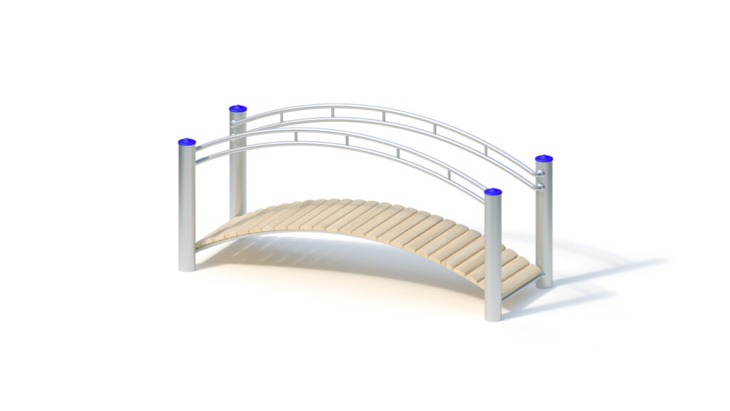 – Bogenbrücke aus Robinienholz mit Handlauf aus Edelstahlrohr