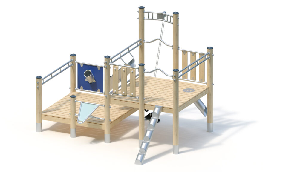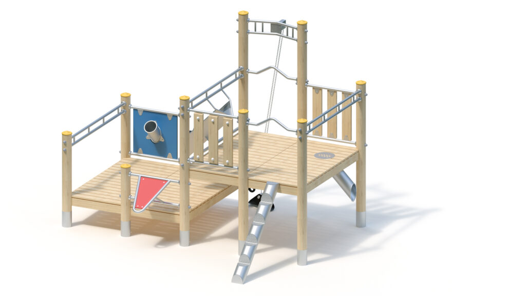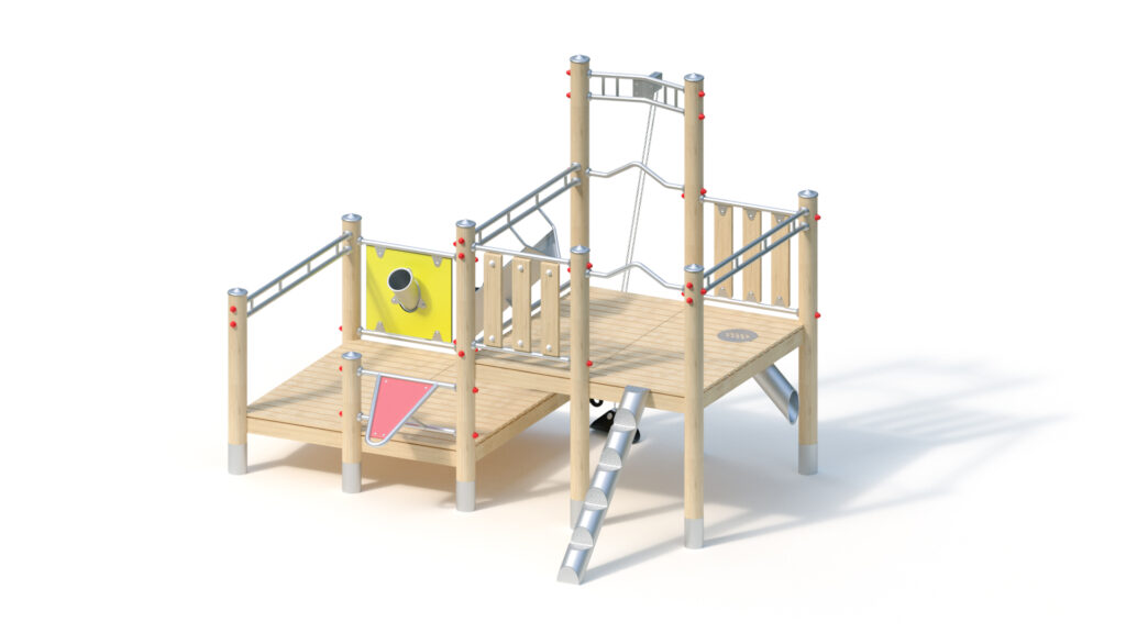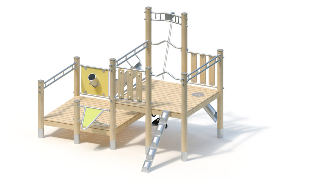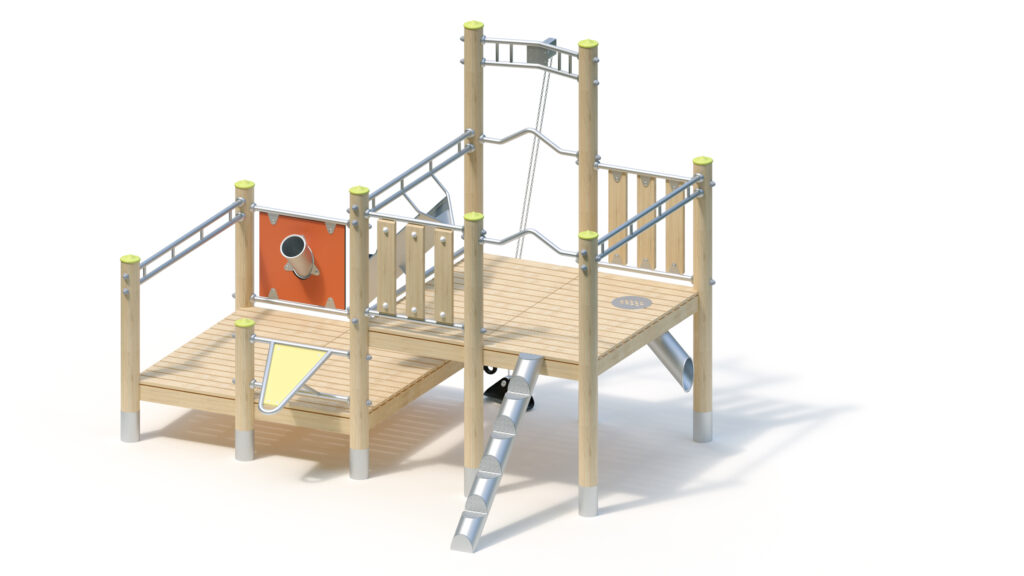– infill panel from highly weather-resistant coloured HPL (yellow) with sand chute and shutter, fastening between stainless steel tubes Ø 33,7 x 2 mm