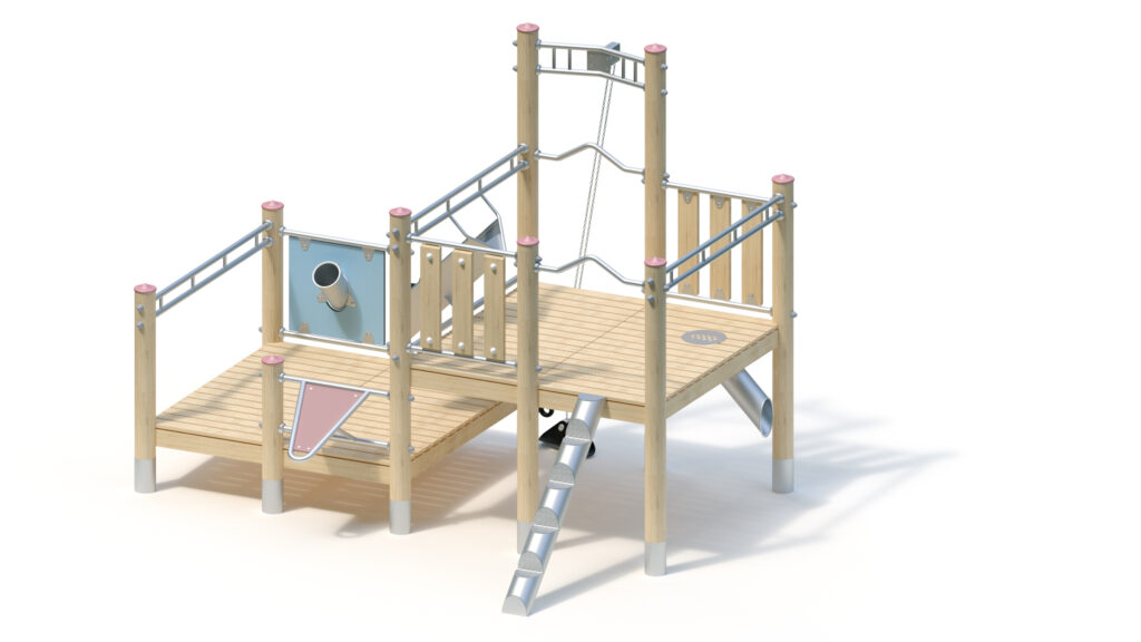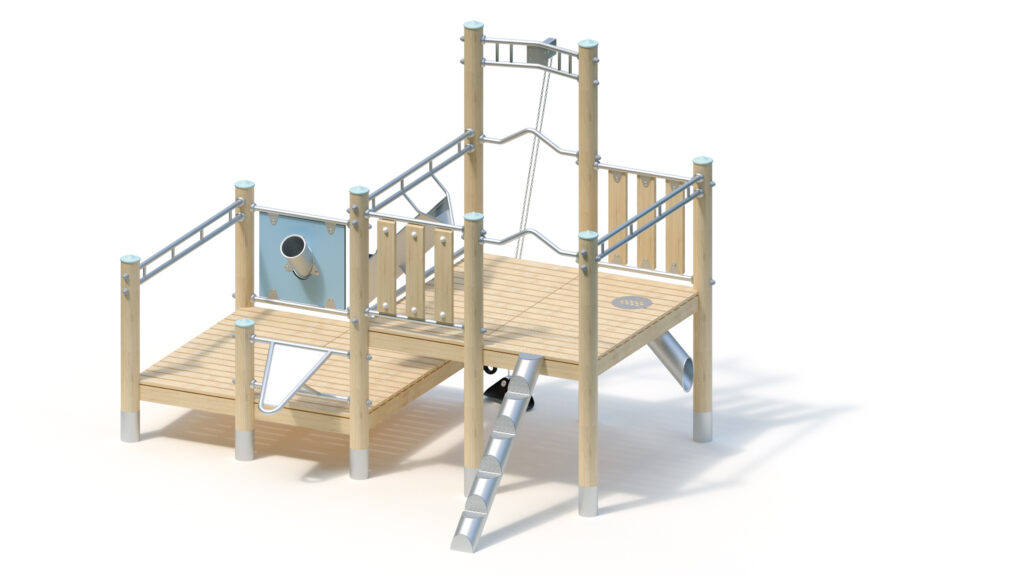 Robinia timber is furnished with water-repellent, breathable protective coating. Besides protection from moisture, that treatment reduces crack formation. Thanks to a specific fastening adaptor, forces arising from the modular attachment parts are directly derived into the posts. Tamper-proof connections thanks to screws with protective screw cap.