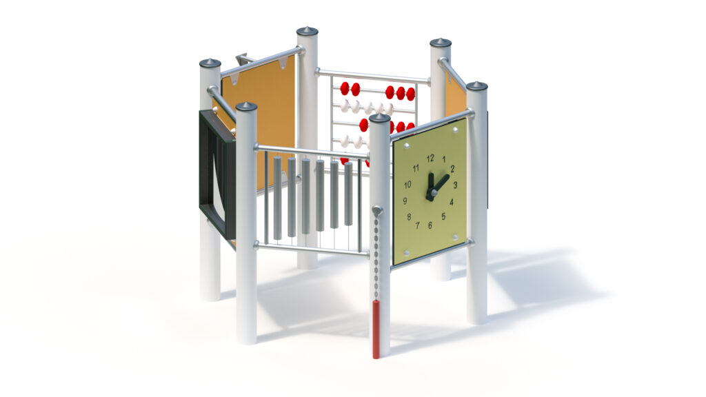 – tubular stainless steel chimes suspended from wire ropes, framed by stainless steel tubes Ø 33,7×2 mm. PVC drumstick included, suspended from the post by means of a chainless steel chain