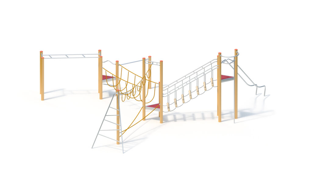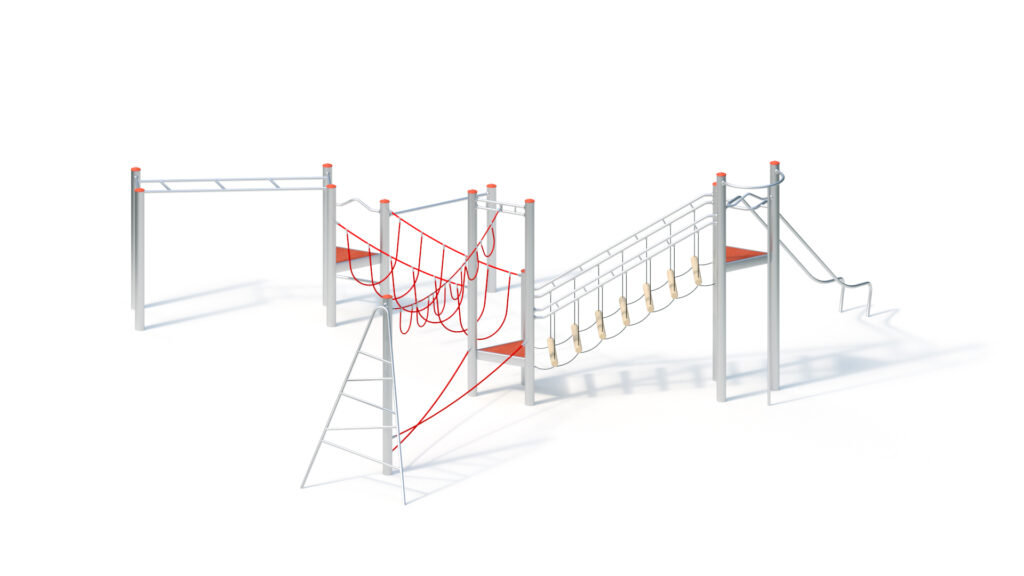 – horizontal monkey bars 0,80 x 2,40 m, from stainless steel tubes Ø 38 x 2,5/33,7 x 2 mm
