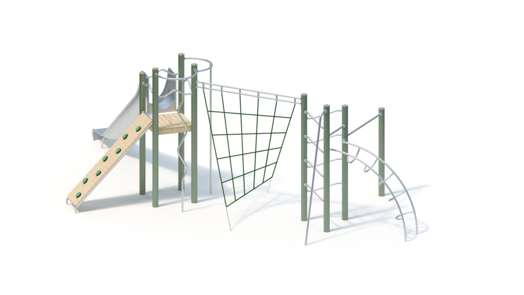 – climb up ramp from Robinia fitted with climbing elements made from HPL