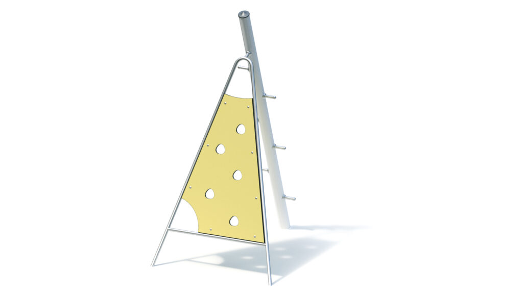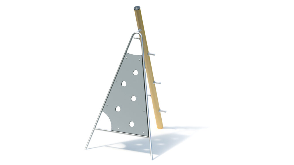 – triangular climbing wall from highly weather-resistant HPL, 20 mm thickness. Tubular stainless steel frame, cut-outs for climbing