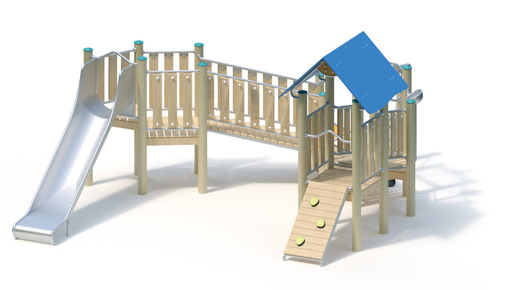 – Robinia climp up ramp with attached climbing elements made from HPL