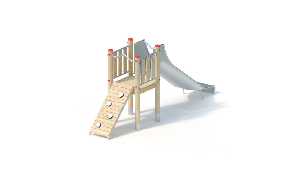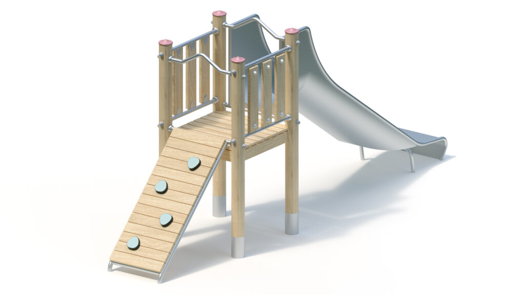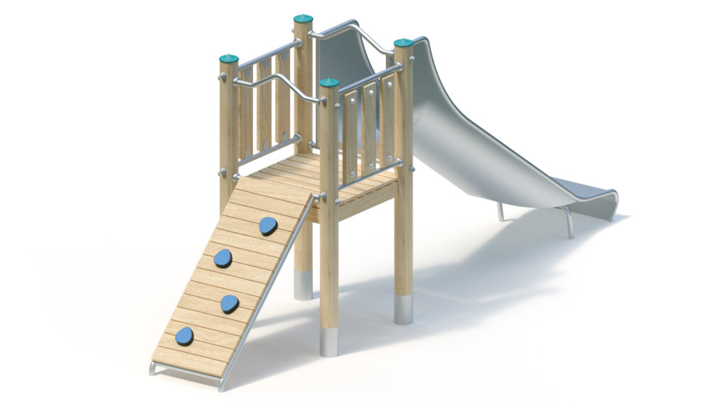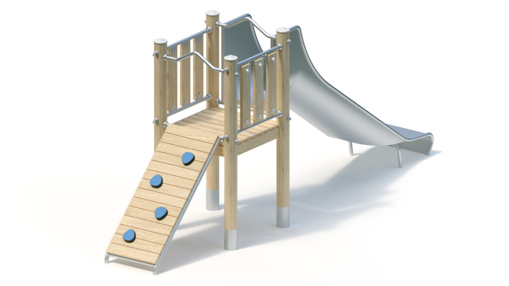 – climb up ramp from Robinia fitted with climbing elements made from HPL