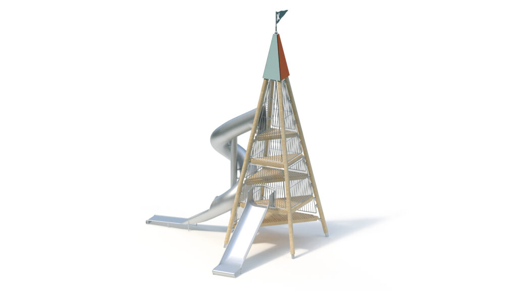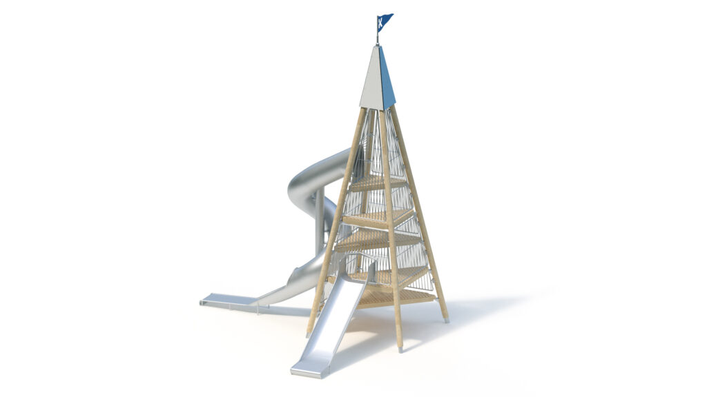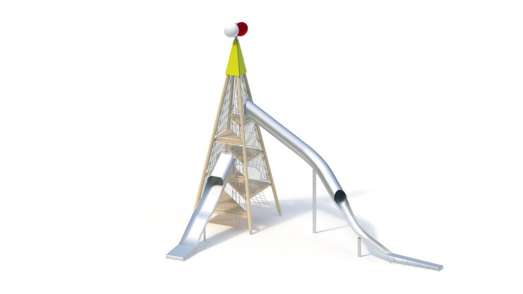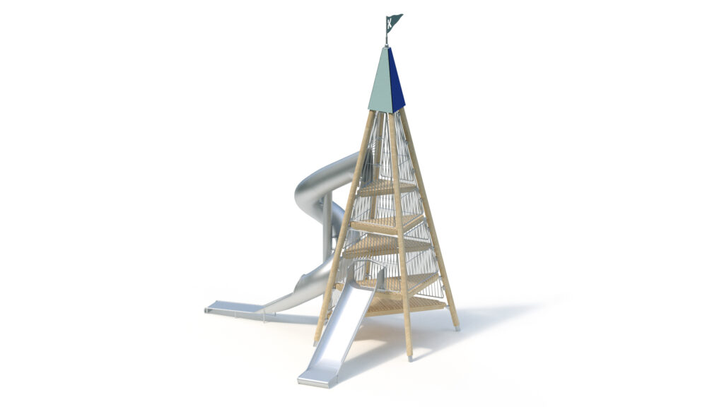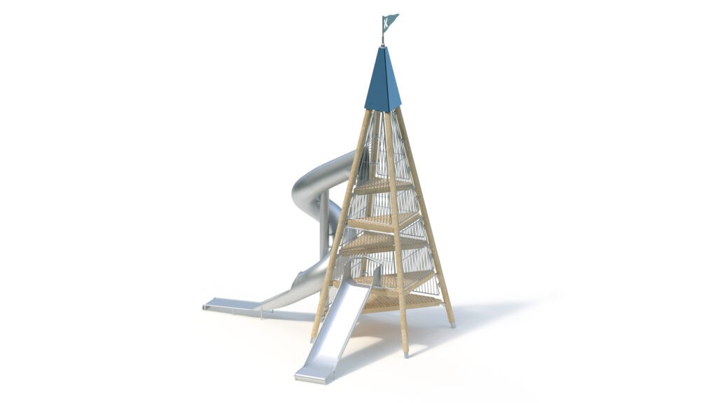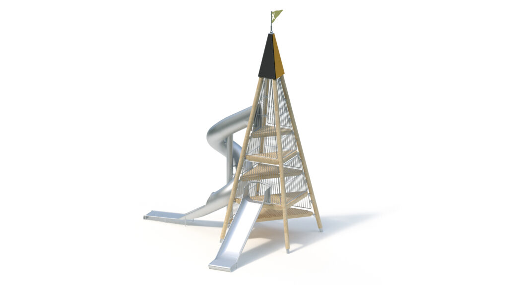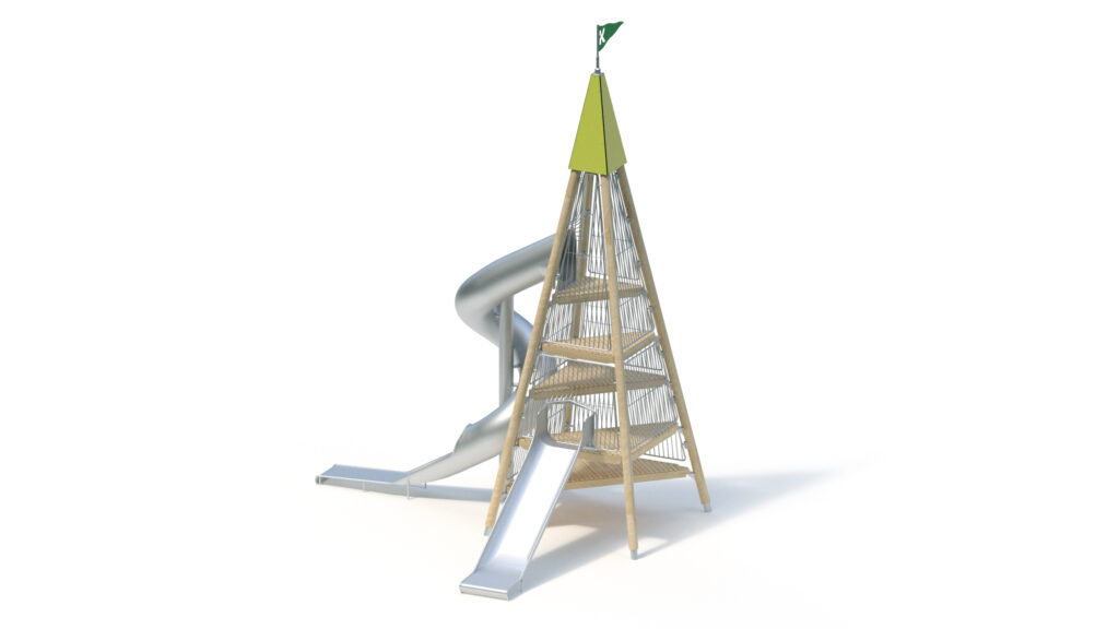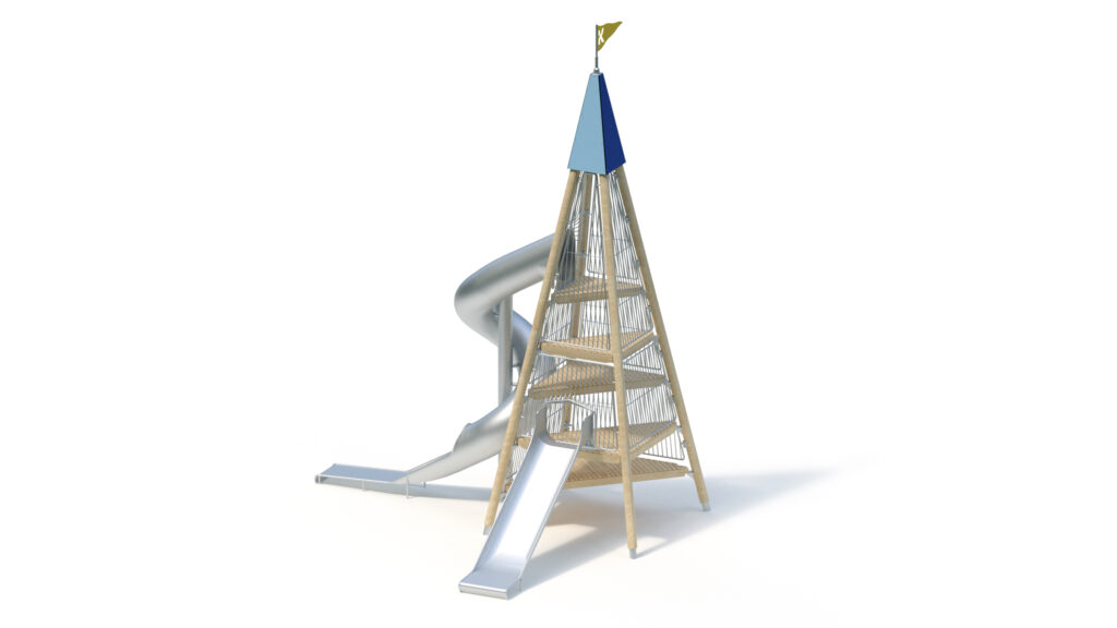Dalben tower (9,50) with helical tunnel slide 30°/38° (5,00 m) and wide attachment slide (2,00 m);