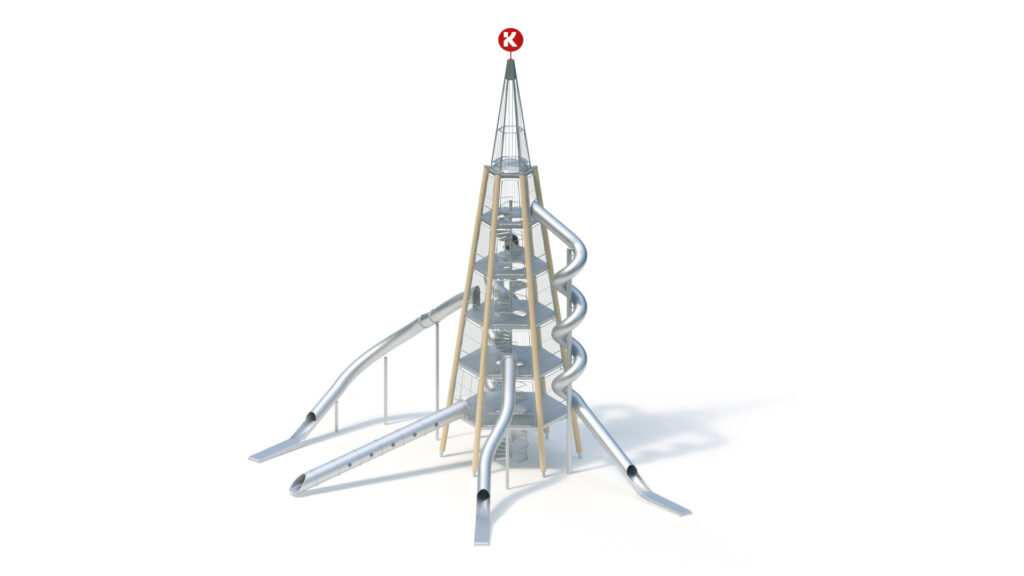 Dalben tower (26,00) with tunnel slides, helical tunnel slides and a roller slide