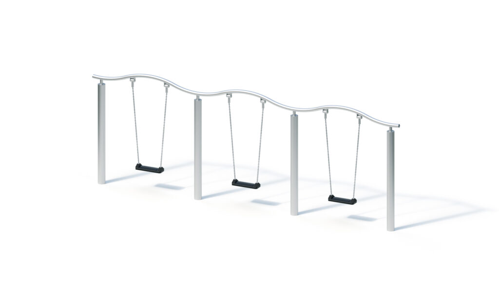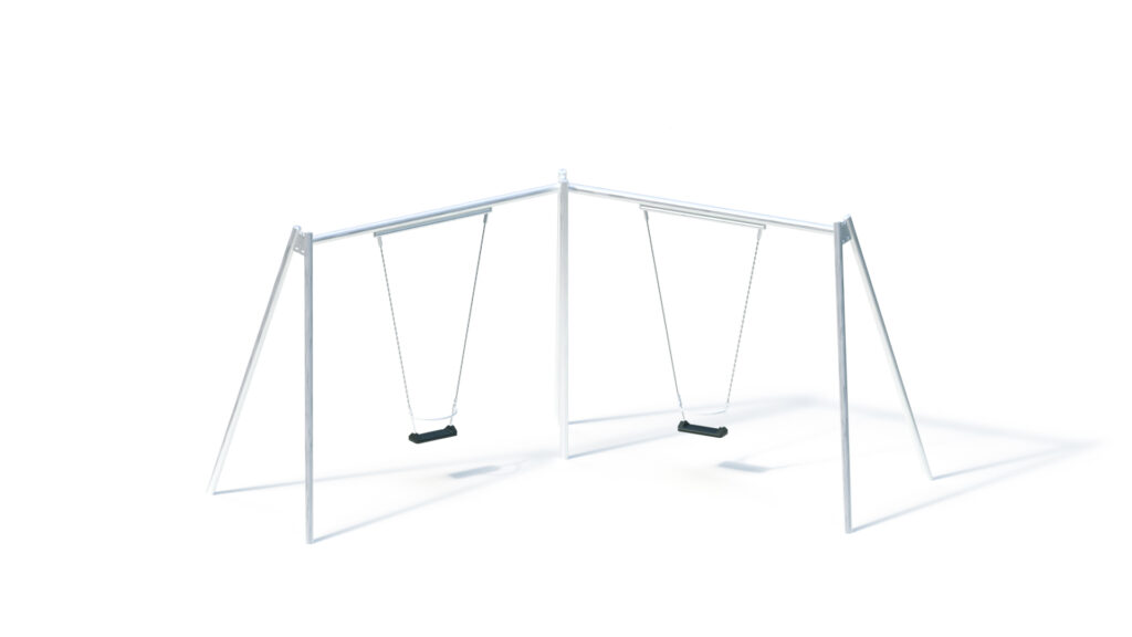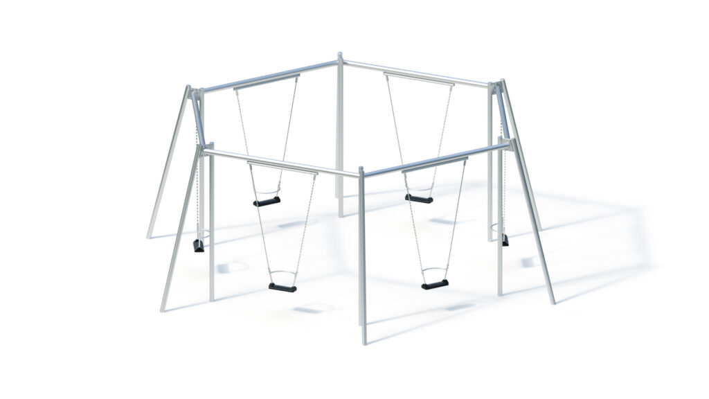 – Swing support posts from hot-dip galvanised steel Ø 76,1 mm, wall thickness 2,9 mm; attachment to swing crossbeam by means of connector plates