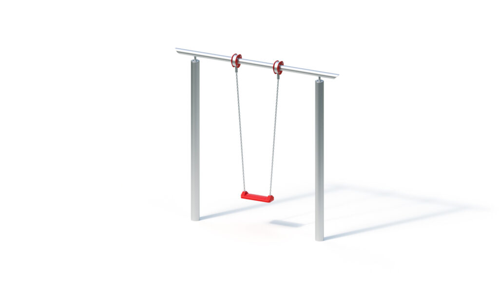 – Swing crossbeam from hot-dip galvanised steel, Ø 88,9 mm, wall thickness 3,2 mm; attachment to swing supports by means of connector plates