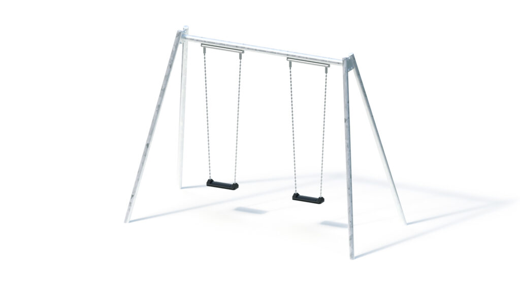 – Swing support posts from hot-dip galvanised steel Ø 76,1 mm, wall thickness 2,9 mm; attachment to swing crossbeam by means of connector plates