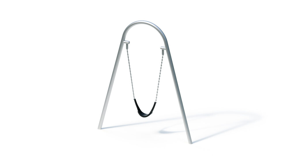 – Swing support posts from stainless steel Ø 76,1 mm, wall thickness 2,9 mm; attachment to swing crossbeam by means of connector plates