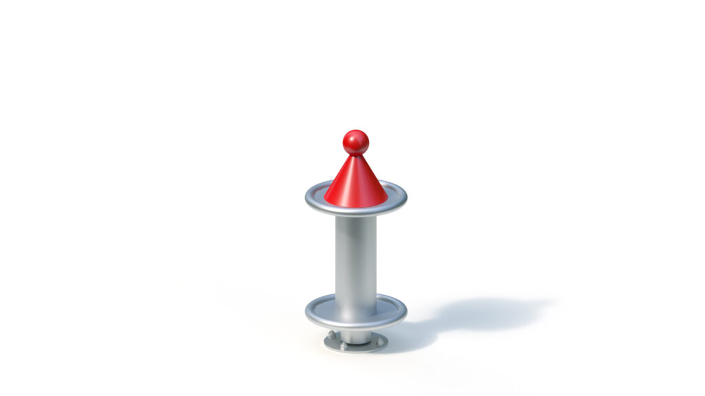 Für den einfachen Einbau in synthetischen Fallschutz ist gegen Mehrpreis ein Fundamentanker (Art.-Nr. 1090219) erhältlich. Bei zeitweiser Demontage des Drehhütchens wird die Bodenöffnung höhengleich durch eine passende HPL-Platte verschlossen.