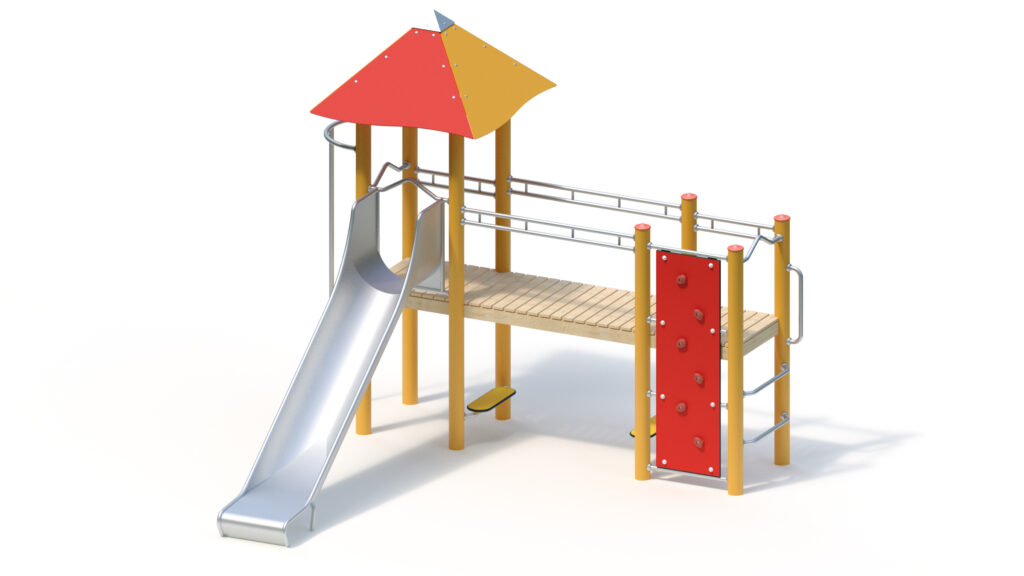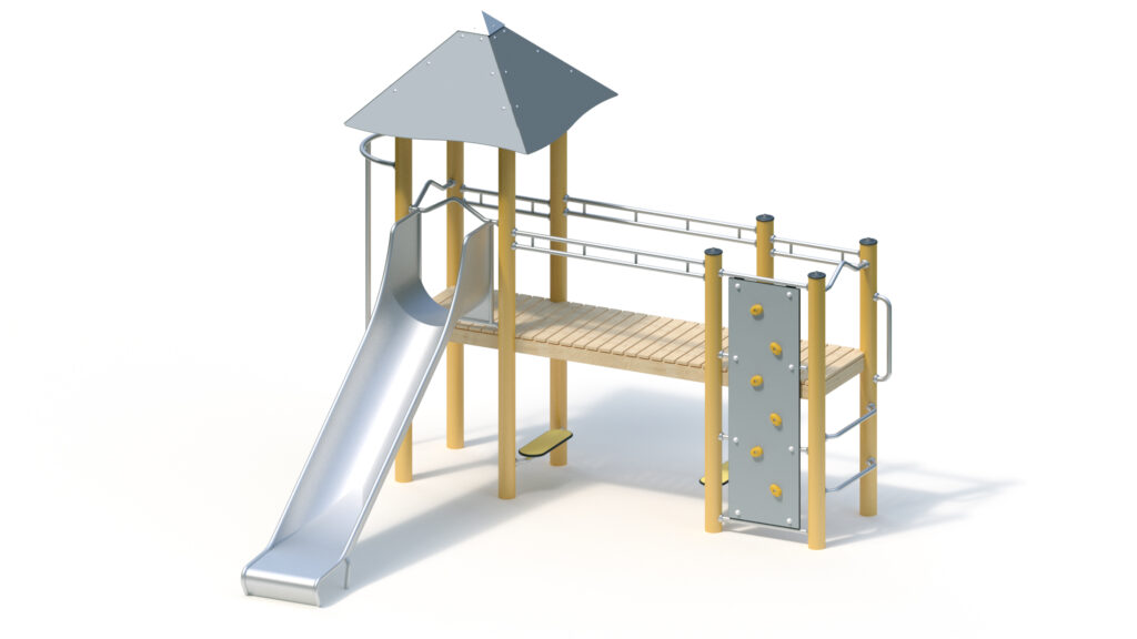 Das Robinienholz wird mit einem wasserabweisenden, atmungsaktiven Schutzanstrich versehen. Neben dem Schutz vor Feuchtigkeit reduziert diese Behandlung die Rissbildung. Die modularen Anbauteile leiten ihre Kräfte über eine spezielle Adapterbefestigung direkt in die Standpfosten ein. Die Schraubverbindungen sind gegen unbefugtes Lösen gesichert.