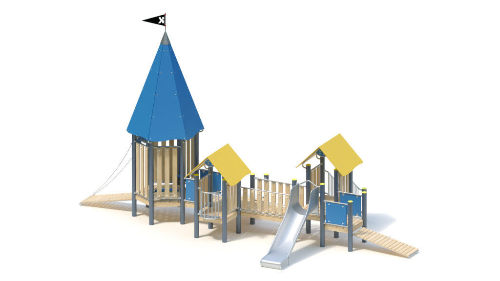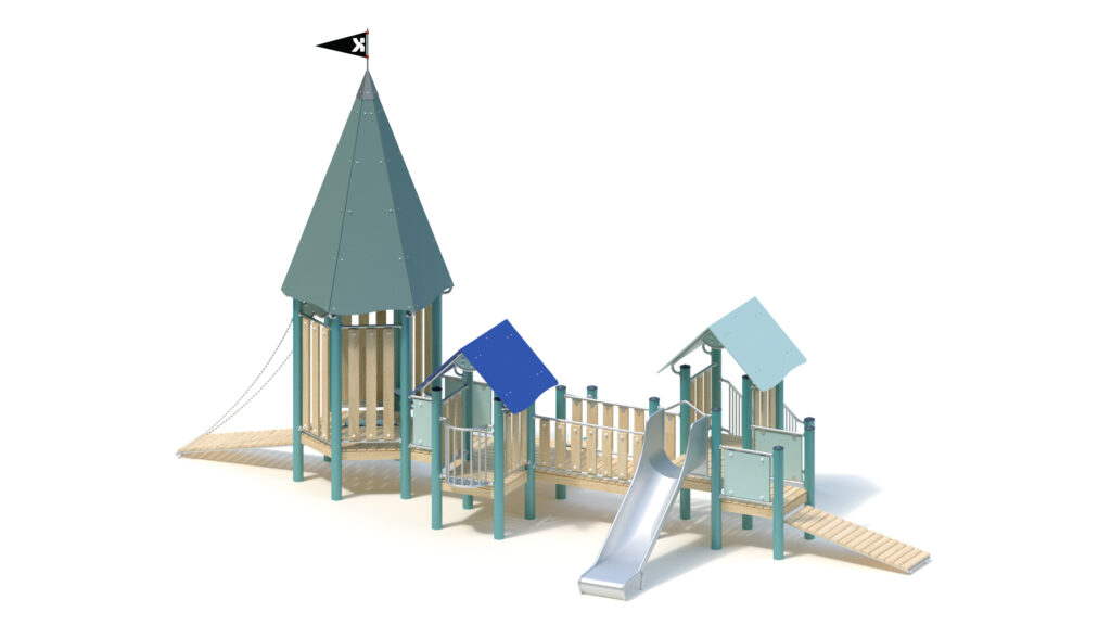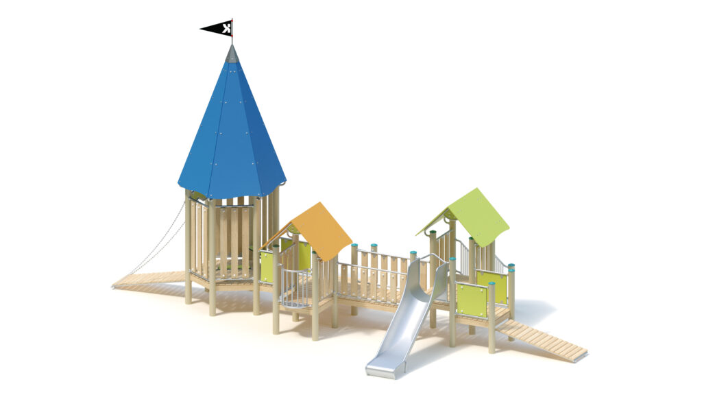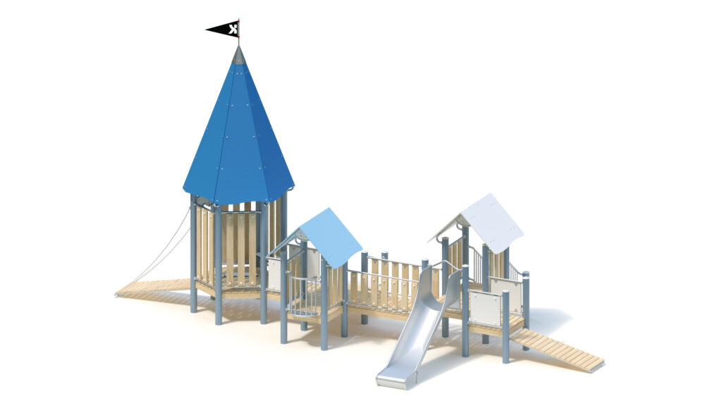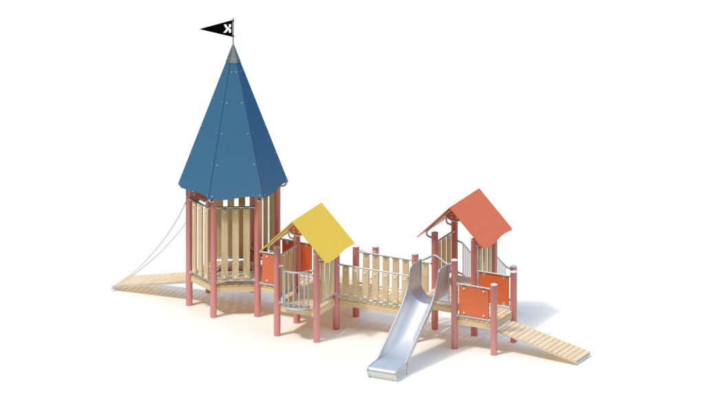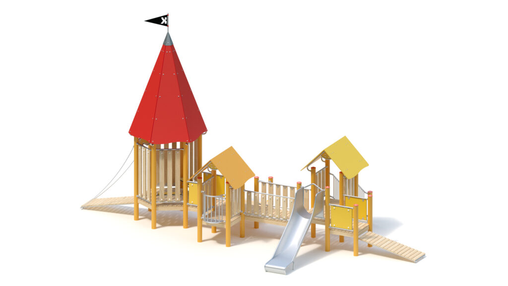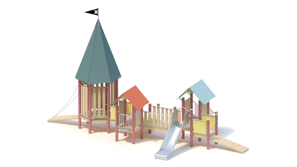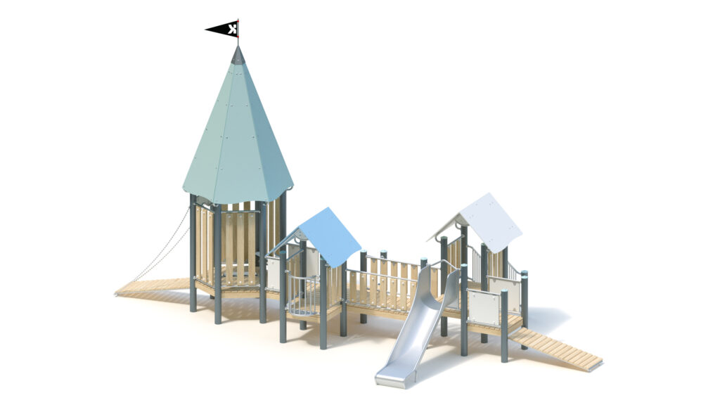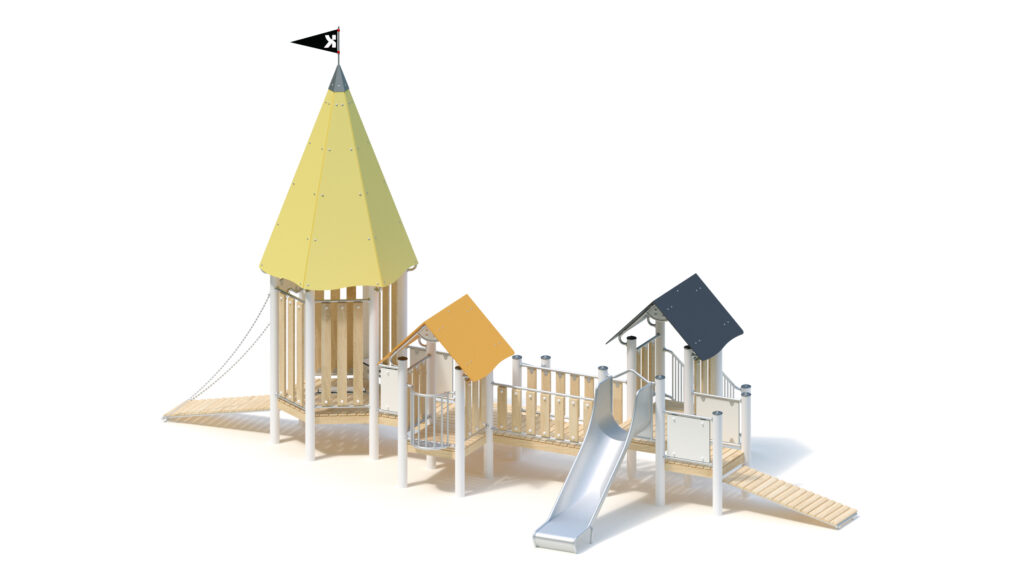 – Turmdach, Neigung 75°, aus höchst witterungsbeständiger HPL-Schichtstoffplatte, 13 mm, mitTurmfahne, drehbar
