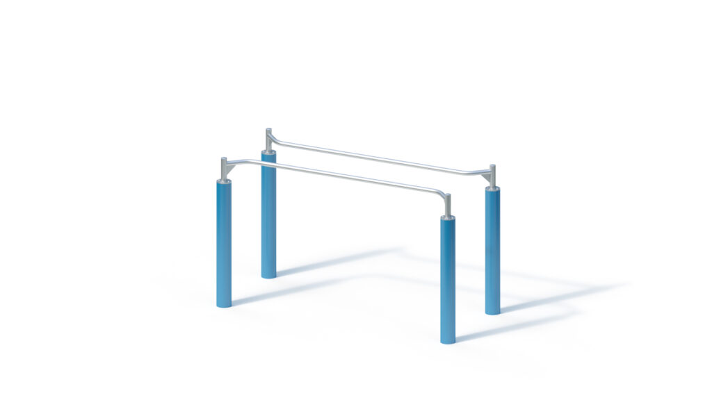 The device is optionally available as permanently installed public playground equipment (certified according to EN 1176) or as permanently installed outdoor fitness equipment (certified according to EN 16630).