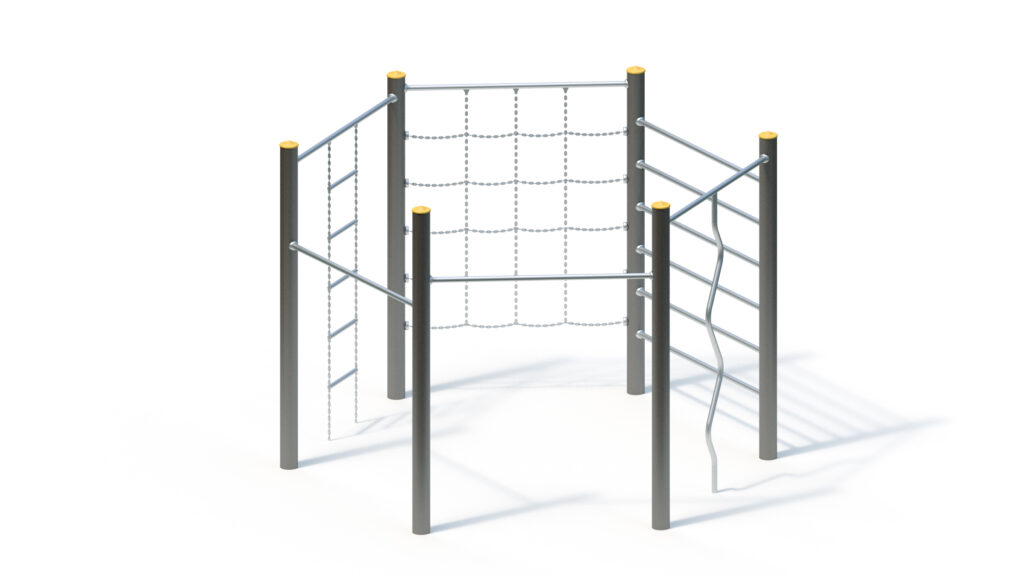 Metal components: stainless steel. Thanks to a specific fastening adaptor, forces arising from the modular attachment parts are directly derived into the posts. Tamper-proof connections thanks to screws with security socket.