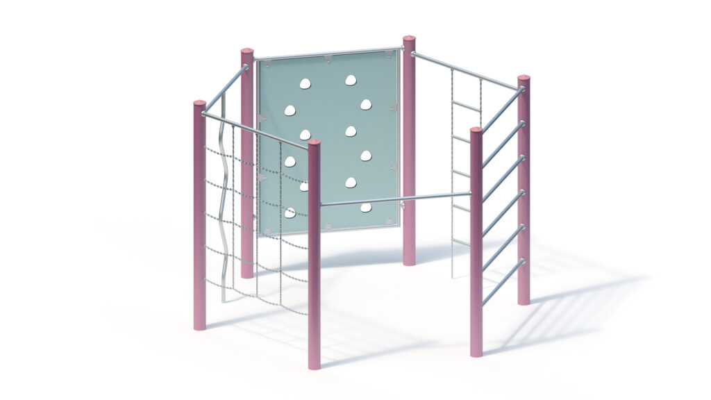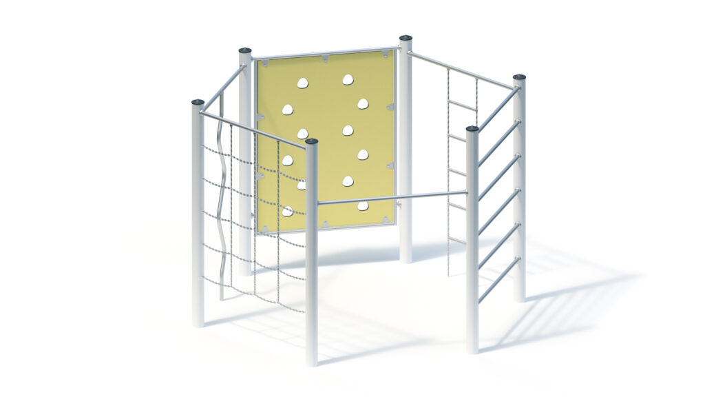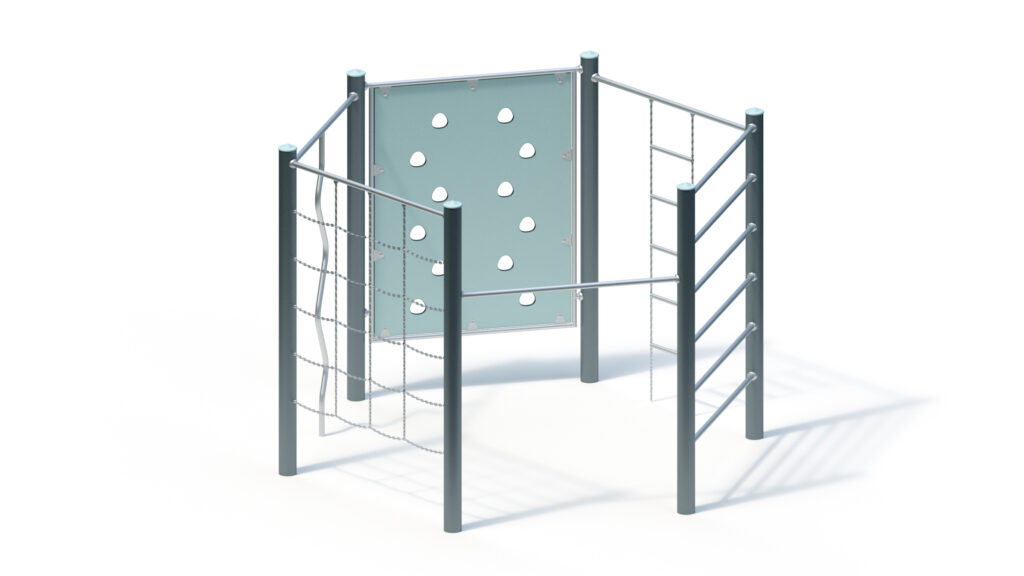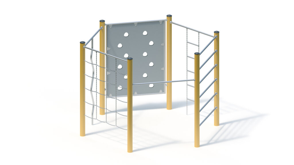 – climbing wall with 12 cut-outs from highly weather-resistant HPL, 20 mm thickness, framed by stainless steel tubes
