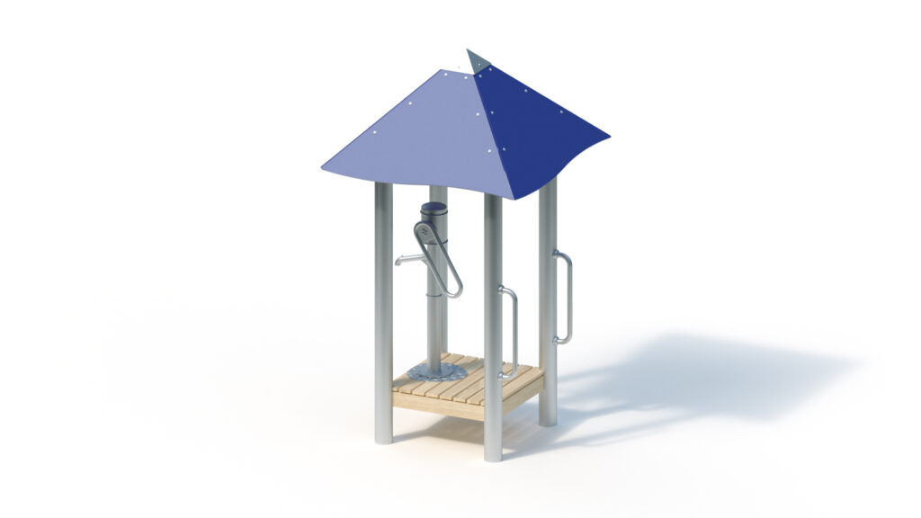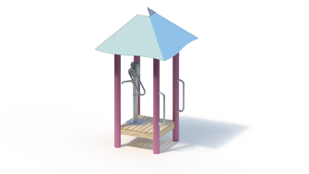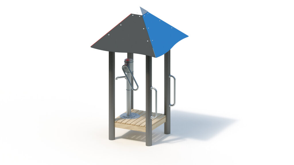 – tent roof, 45° inclination, made from blue highly weather-resistant HPL panels, 13 mm thickness, fastening to stainless steel frame Ø 33,7 x 2 mm, with protective stainless steel hood on top