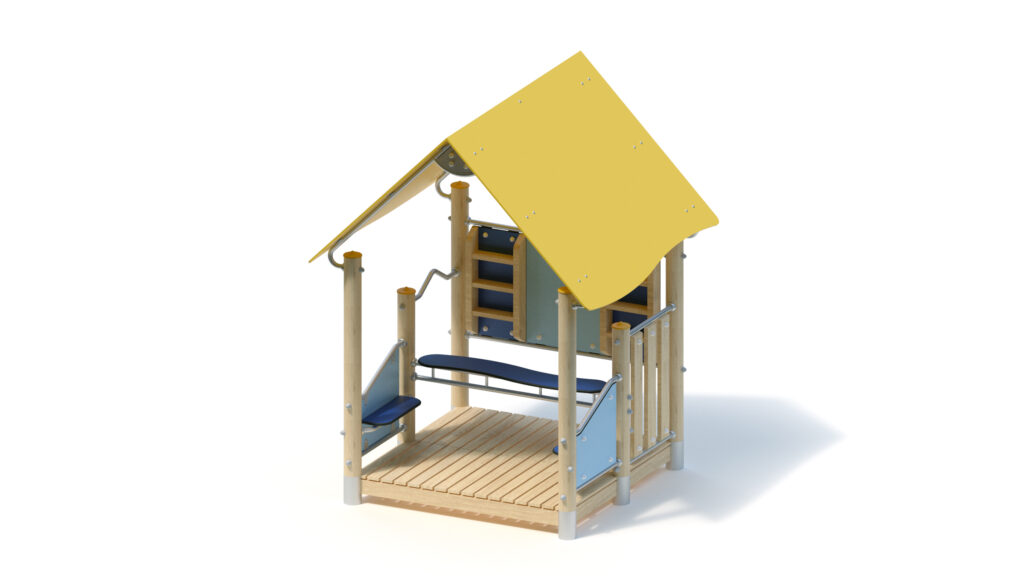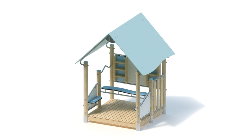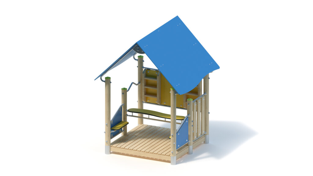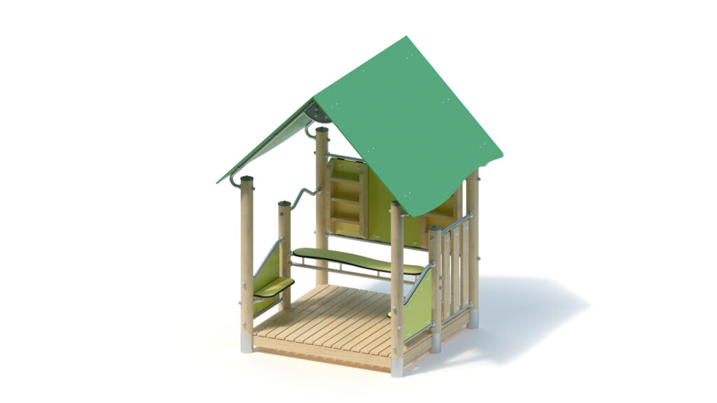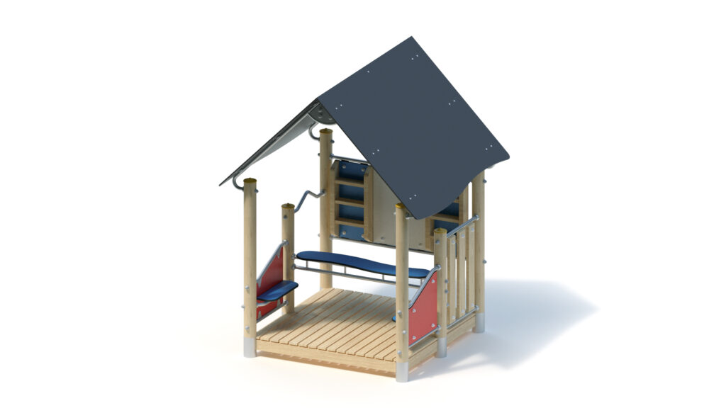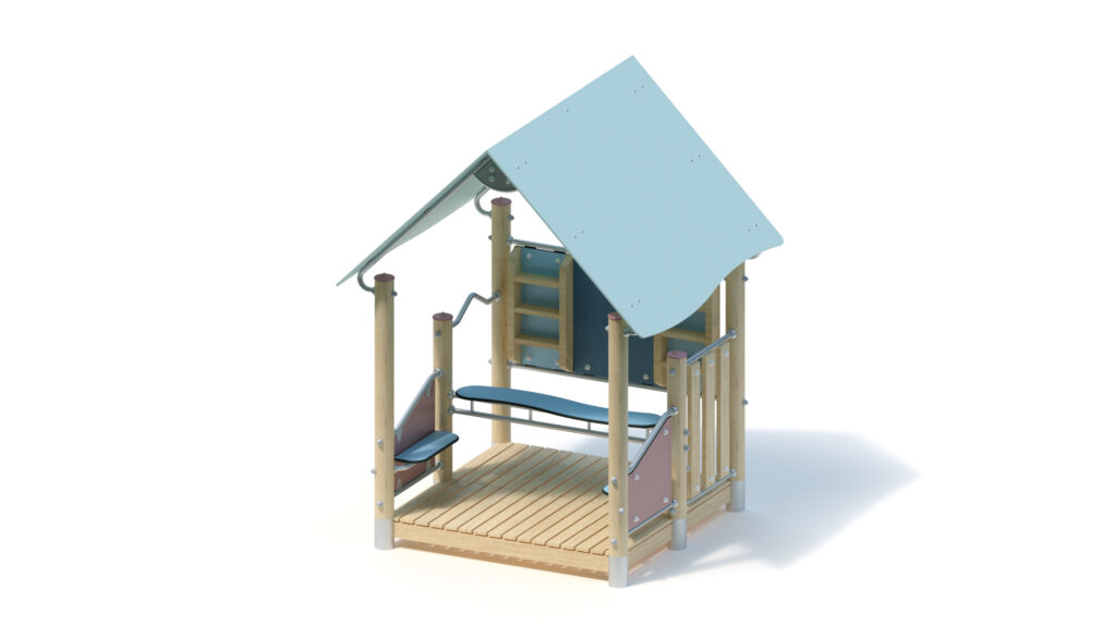 – Giebeldach, Neigung 45°, aus höchst witterungsbeständiger HPL-Schichtstoffplatte, 13 mm, Befestigung an Dachrahmen aus Edelstahlrohr Ø 33,7 x 2 mm