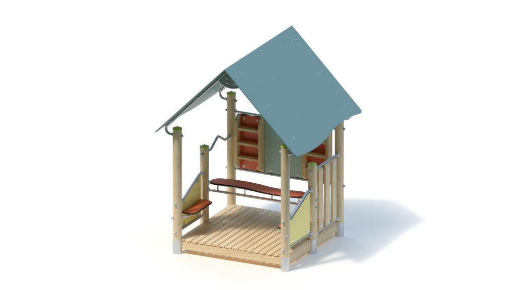 Metallbauteile: Edelstahl. Das Robinienholz wird mit einem wasserabweisenden, atmungsaktiven Schutzanstrich versehen. Neben dem Schutz vor Feuchtigkeit reduziert diese Behandlung die Rissbildung. Die modularen Anbauteile leiten ihre Kräfte über eine spezielle Adapterbefestigung direkt in die Standpfosten ein. Die Schraubverbindungen sind durch Abdeckkappen gegen unbefugtes Lösen gesichert.