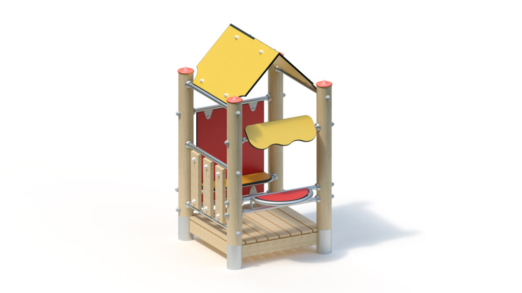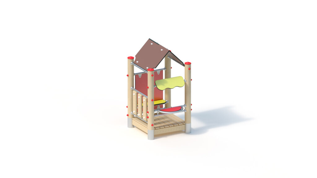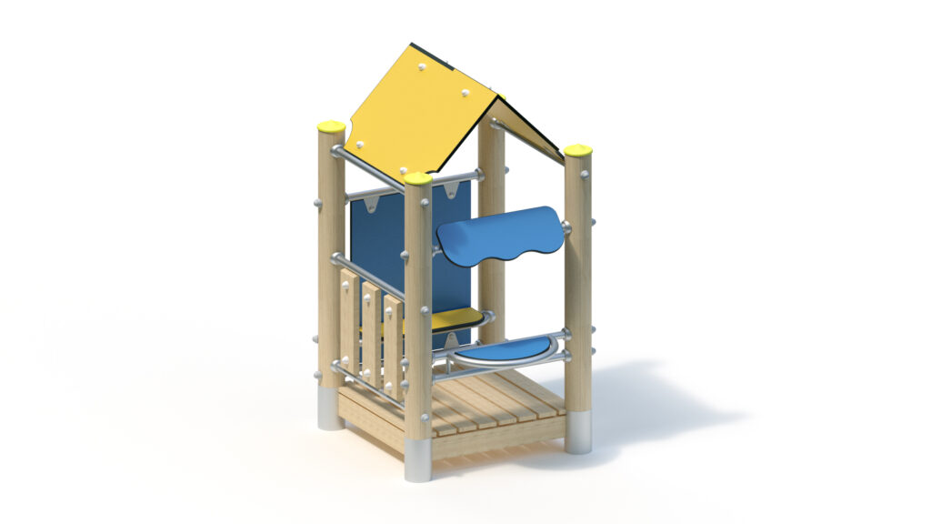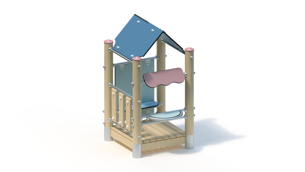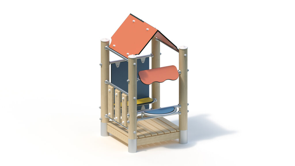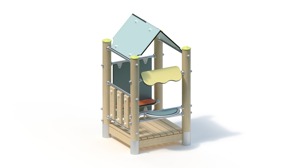 – saddle roof, 45° inclination, made from brown highly weather-resistant HPL panels, 13 mm thickness, fastening to stainless steel frame Ø 33,7 x 2 mm