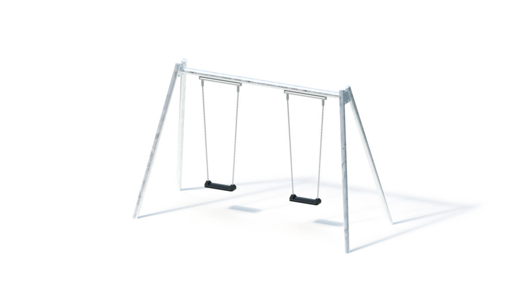 – Swing support posts from stainless steel Ø 76,1 mm, wall thickness 2,9 mm; attachment to swing crossbeam by means of connector plates