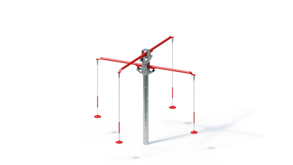– Standpfosten aus Stahlrohr Ø 193,7 x 5,6 mm, feuerverzinkt, mit Fußplatte.