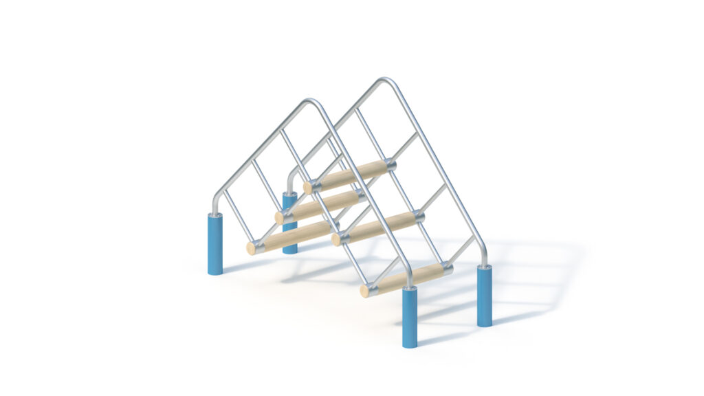 The device is optionally available as permanently installed public playground equipment (certified according to EN 1176) or as permanently installed outdoor fitness equipment (certified according to EN 16630).