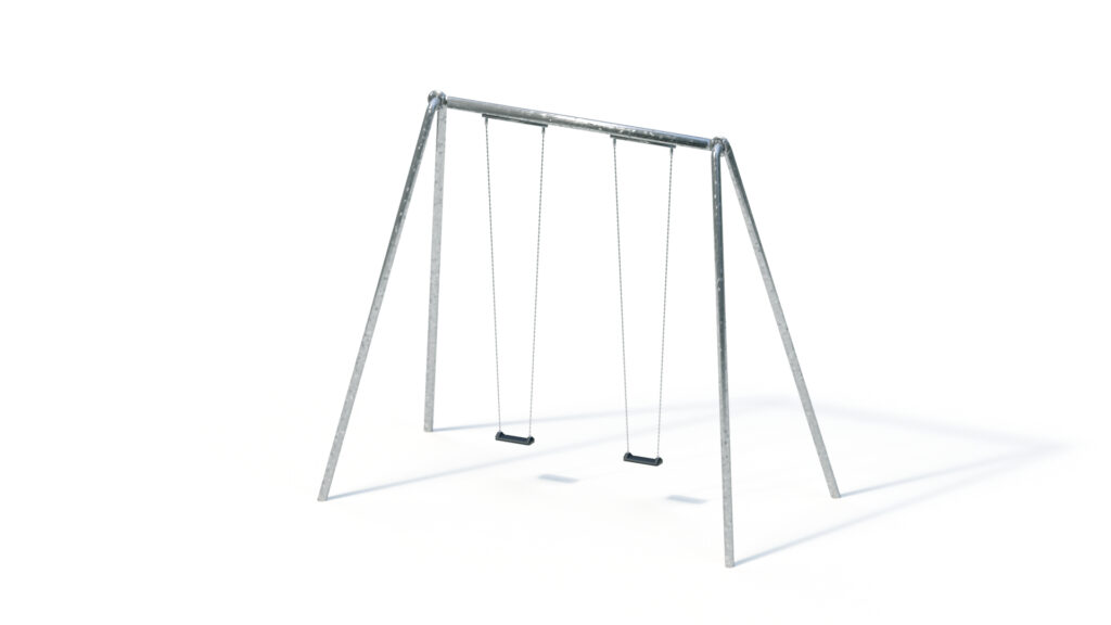 – Schaukelstützen aus feuerverzinktem Stahl, Ø 108 mm, Wandstärke 6,3 mm; Anschluss an Schaukelträger über Dübelplatten