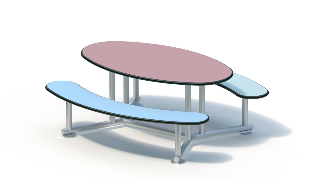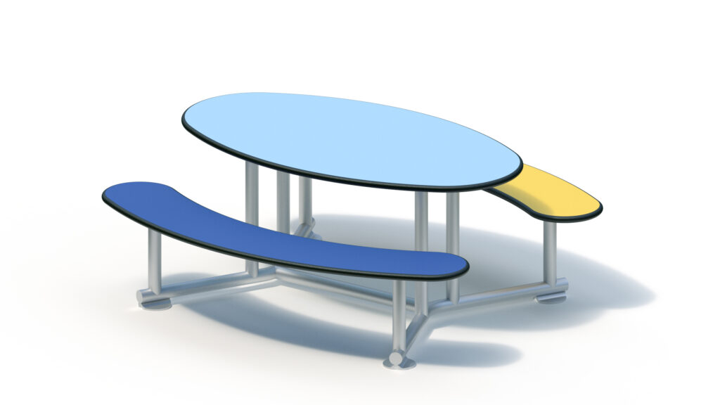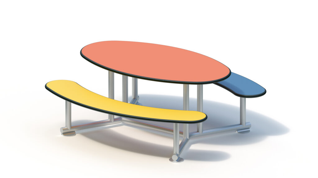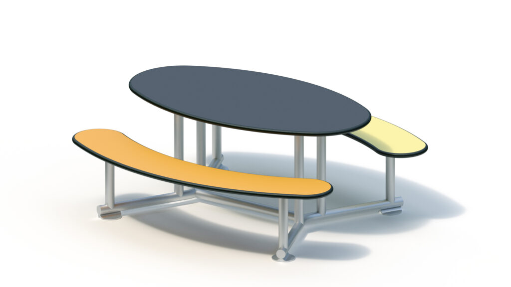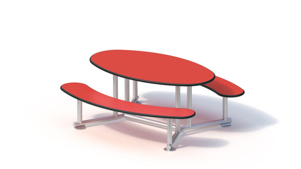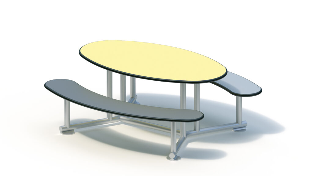 Seats and table are made from highly weather resistant HPL panels of a thickness of 20 mm.
