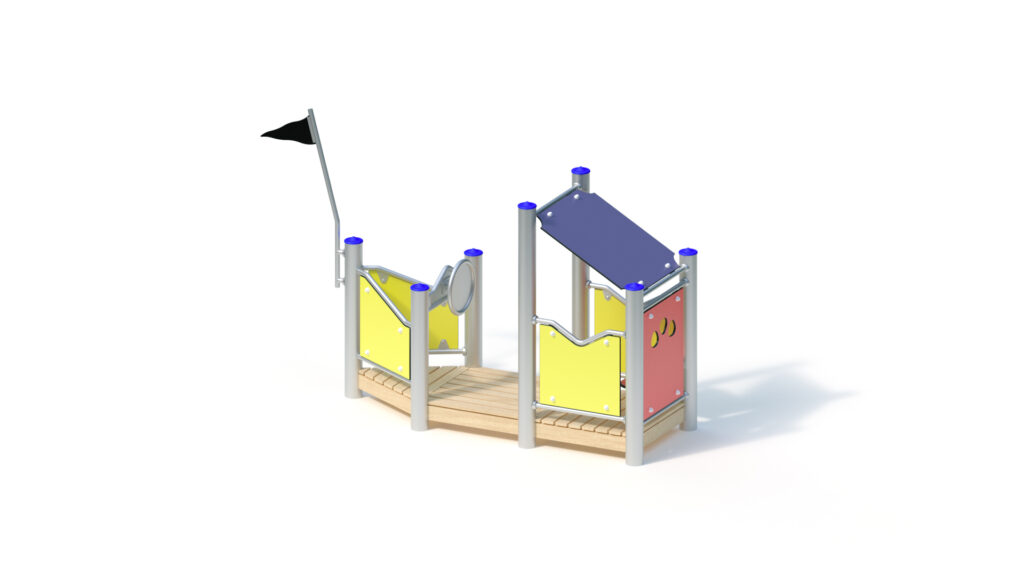 Laminated Robinia timber Ø 120 mm with cylindrical milling. End-grain surfaces are covered by non-detachable protective stainless steel caps. Stainless steel tubular pedestal for concrete-cast foundation and for fixed mounting to round Robinia posts, Ø 120 mm, below playing surface.