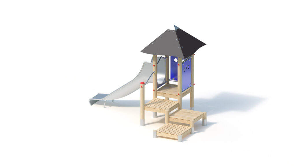 – saddle roof, 45° inclination, made from highly weather-resistant coloured HPL panels, 13 mm thickness, fastening to stainless steel frame Ø 33,7 x 2 mm